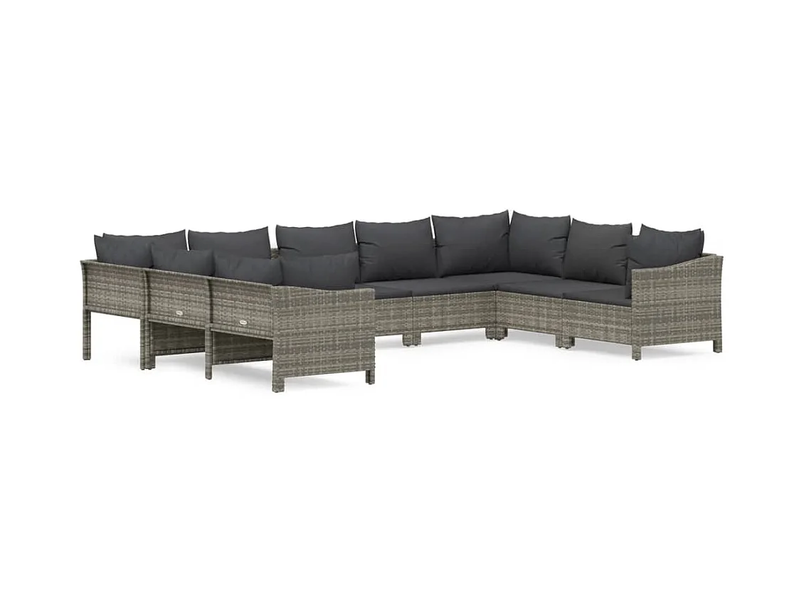 10 pcs conjunto lounge de jardim c/ almofadões vime PE cinzento