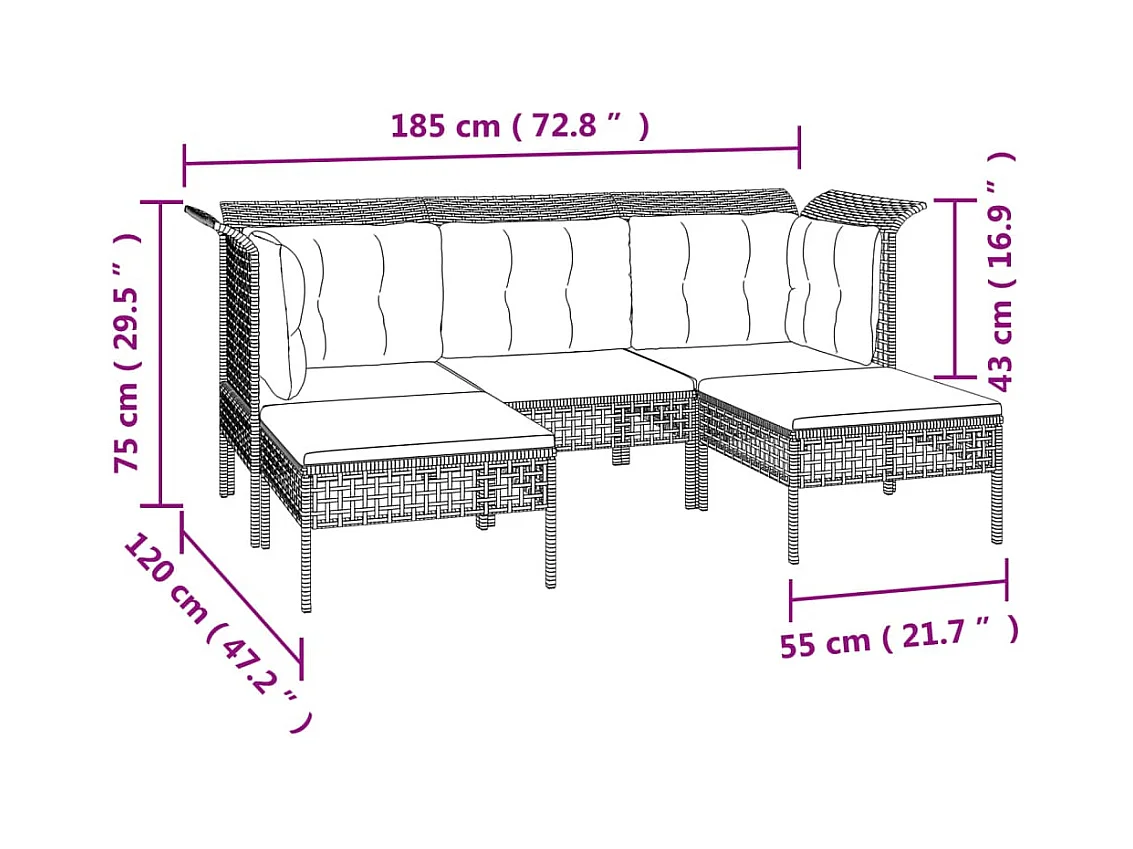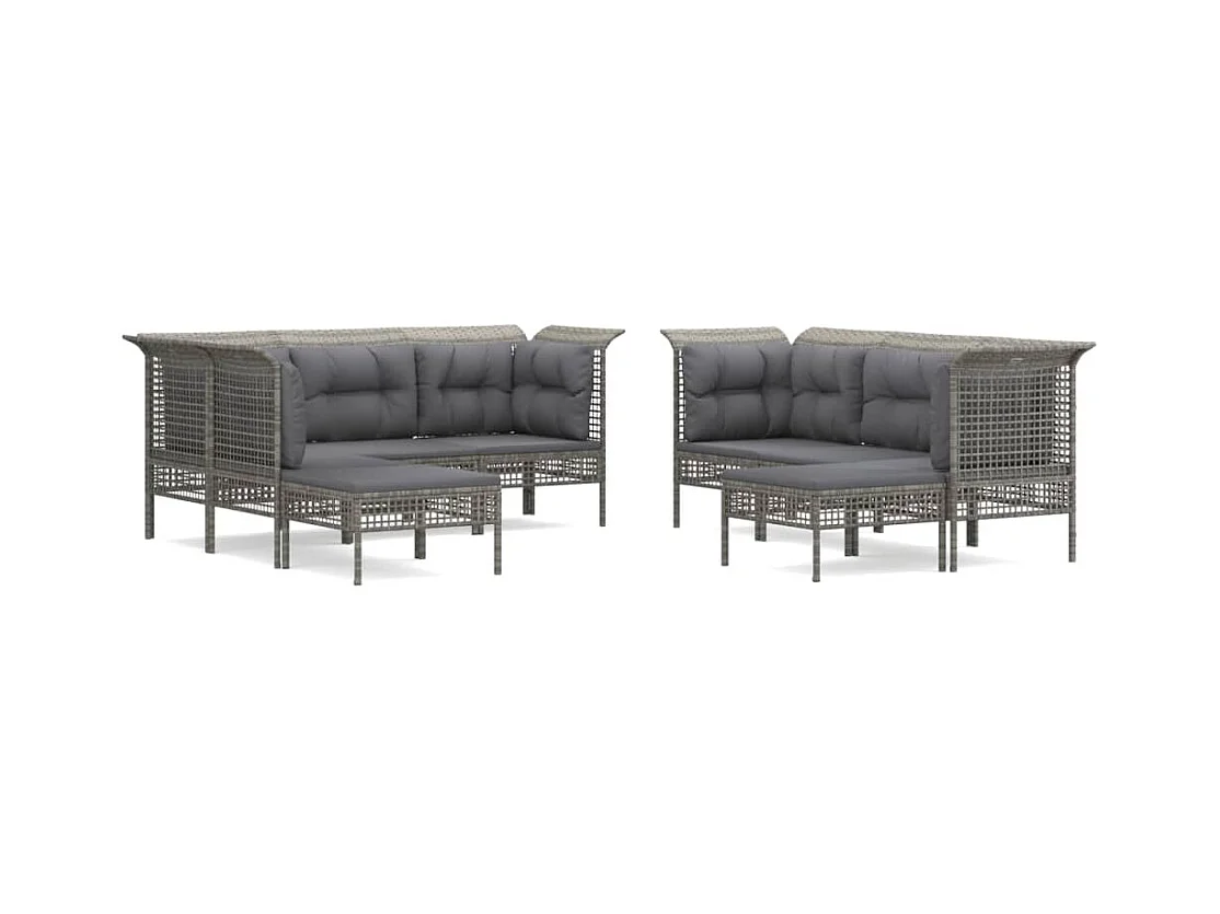 9 pcs conjunto lounge de jardim c/ almofadões vime PE cinzento