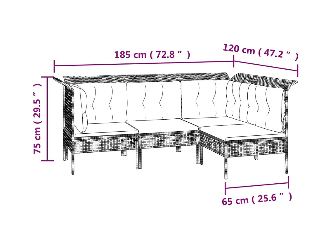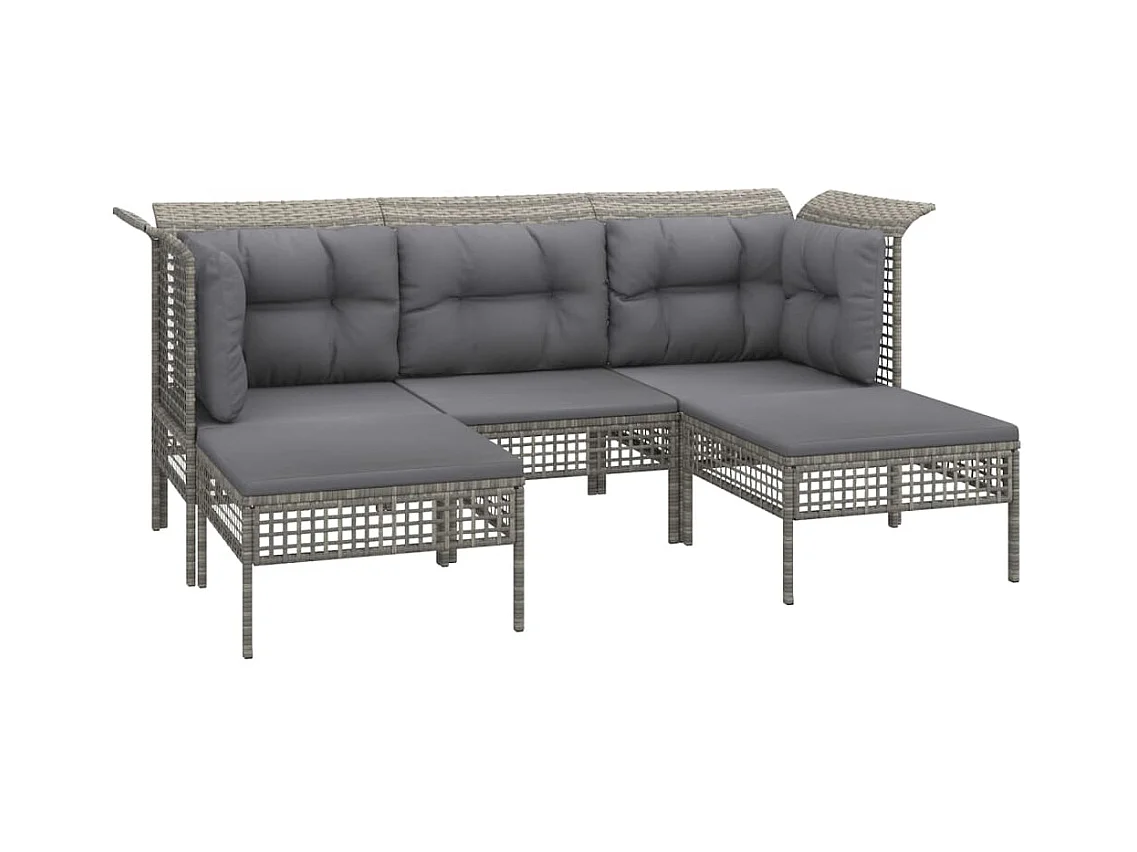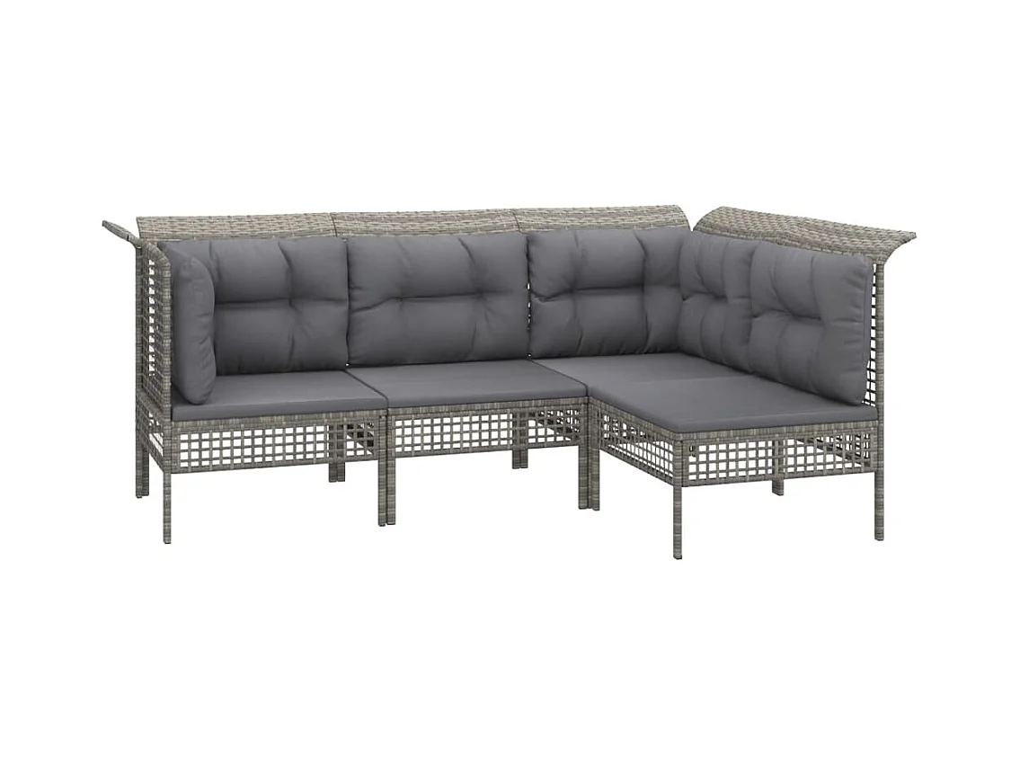 10 pcs conjunto lounge de jardim c/ almofadões vime PE cinzento