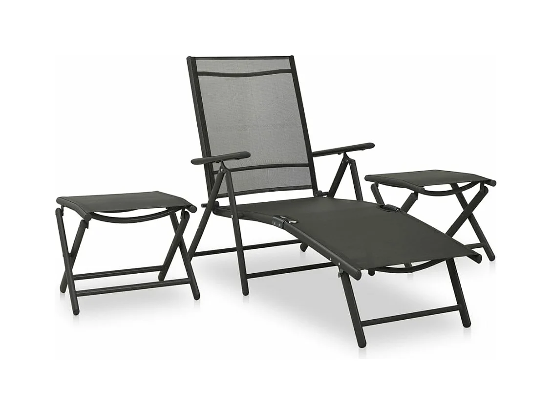 3 pcs conjunto lounge para jardim textilene e alumínio preto