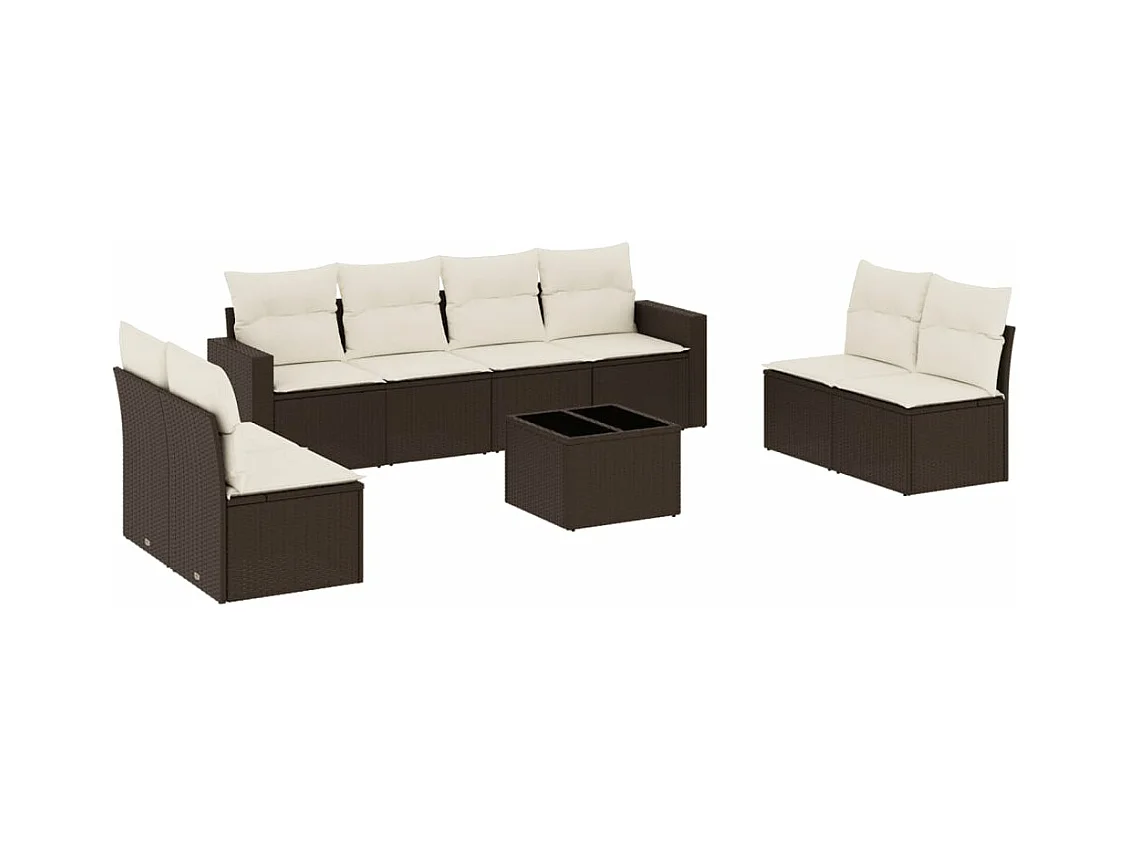 9 pcs conjunto sofás p/ jardim c/ almofadões vime PE castanho