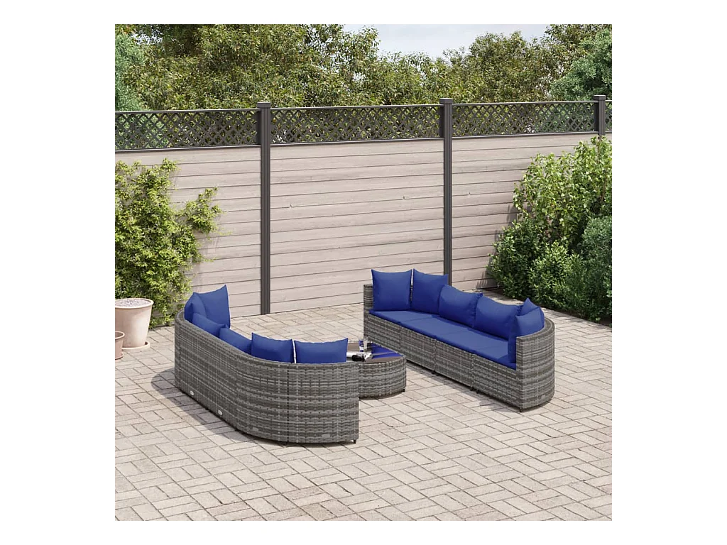 9 pcs conjunto sofás p/ jardim com almofadões vime PE cinzento