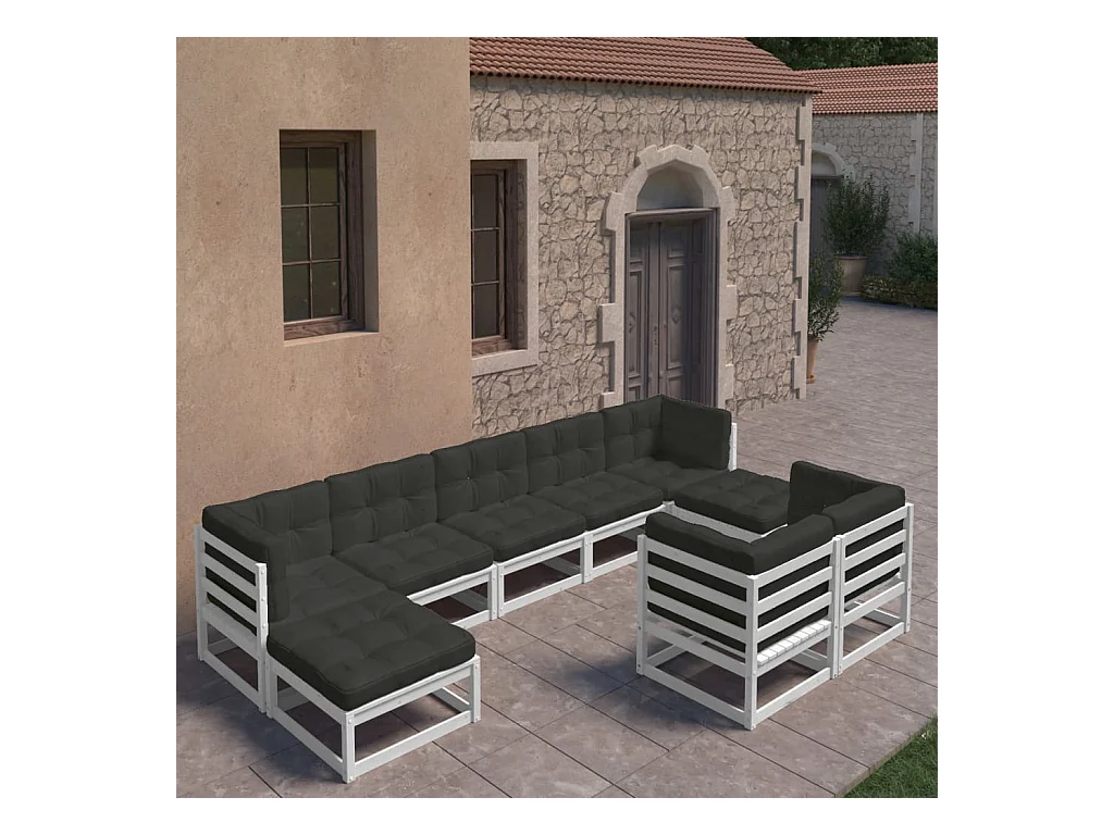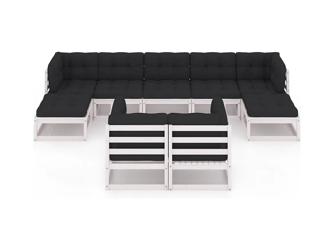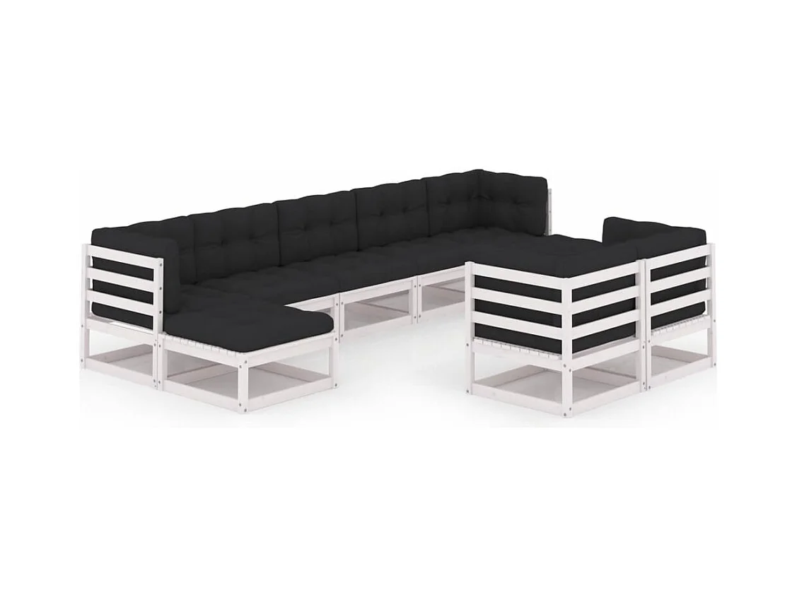 9 peças conj. lounge de jardim c/ almofadões pinho maciço branco