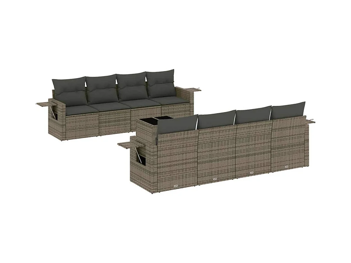 9 peças conj. sofás jardim com almofadões vime PE cinzento-claro