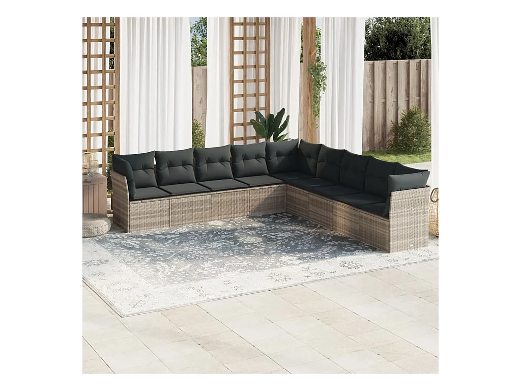 10 peças conj. sofás jardim com almofadões vime PE cinzento-claro
