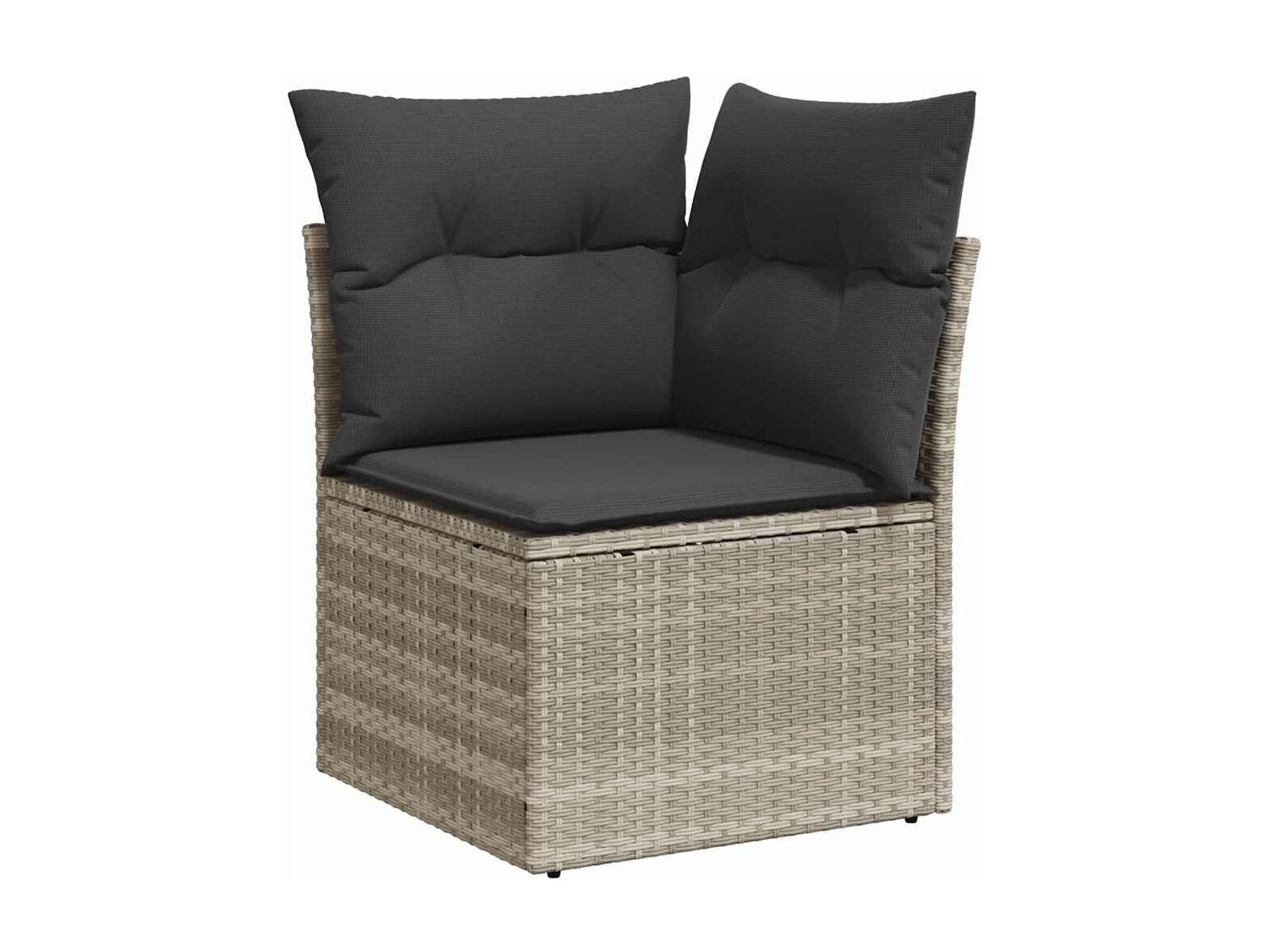 10 peças conj. sofás jardim com almofadões vime PE cinzento-claro