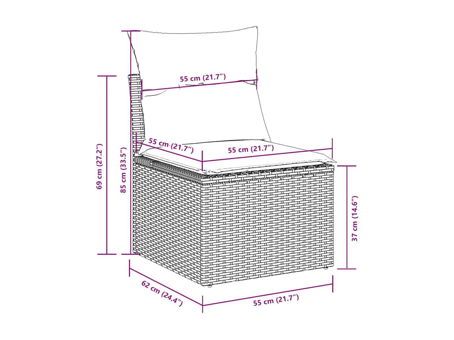 9 peças conj. sofás jardim com almofadões vime PE cinzento-claro