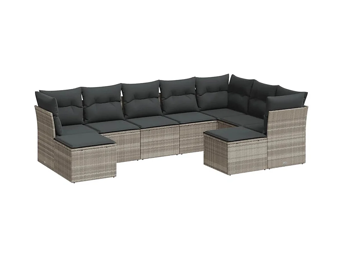 9 peças conj. sofás jardim com almofadões vime PE cinzento-claro