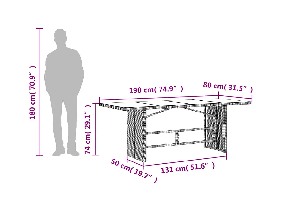 9 peças conj. jantar jardim + almofadões vime PE/vidro cinza claro
