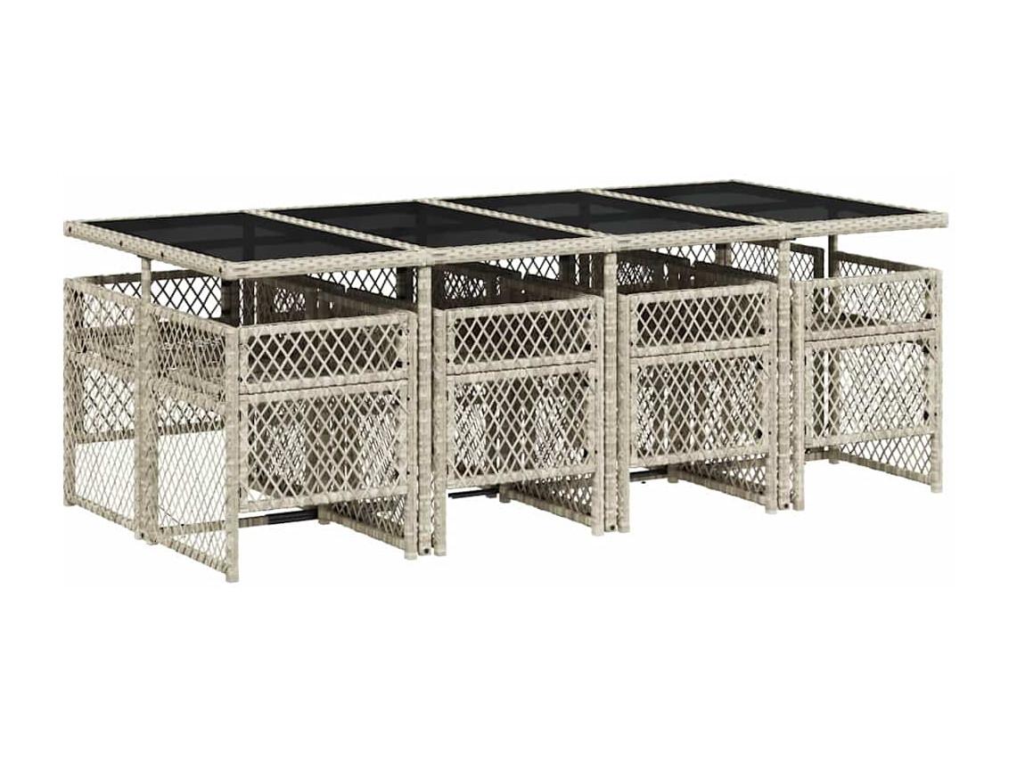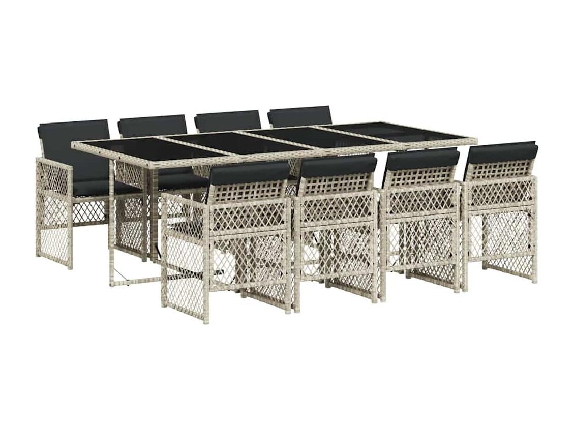 9 peças conjunto de jantar para jardim com almofadões cinzento claro