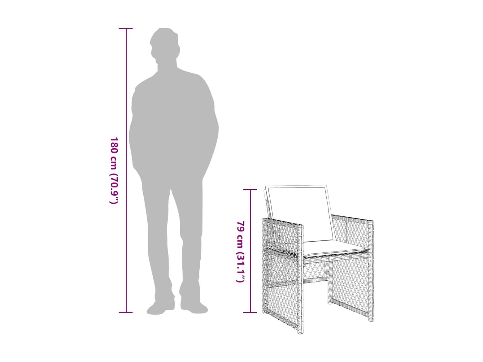9 peças conjunto de jantar para jardim com almofadões vime PE cinza
