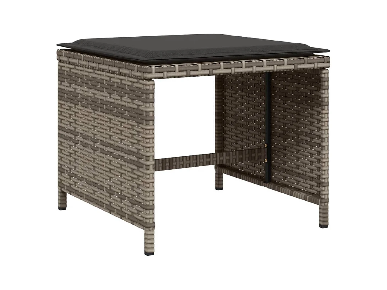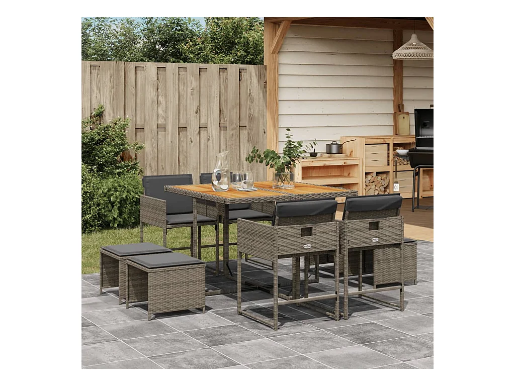 9 peças conjunto de jantar para jardim com almofadões vime PE cinza