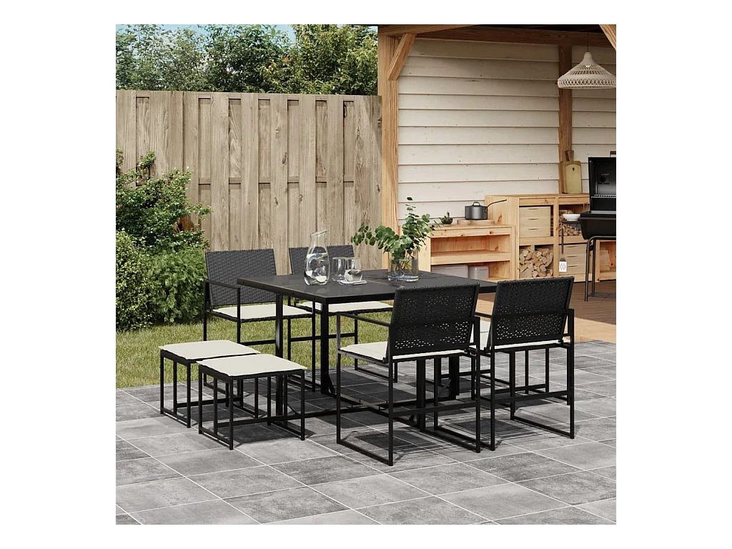 9 peças conjunto de jantar para jardim com almofadões vime PE preto