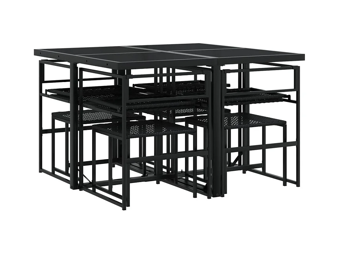 9 peças conjunto de jantar para jardim vime PE preto
