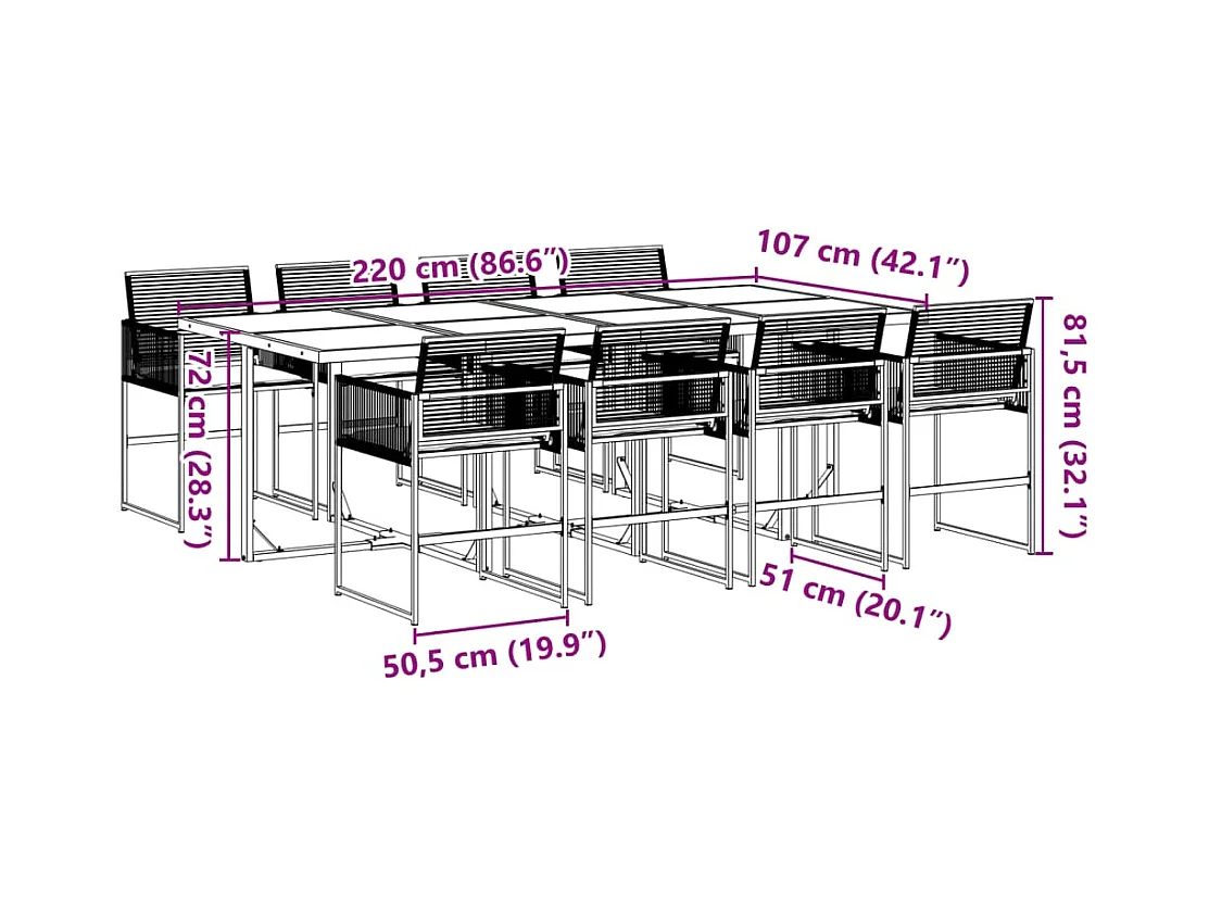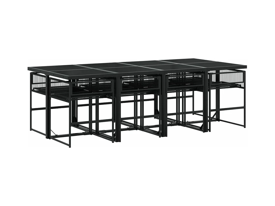9 peças conjunto de jantar para jardim com almofadões vime PE preto