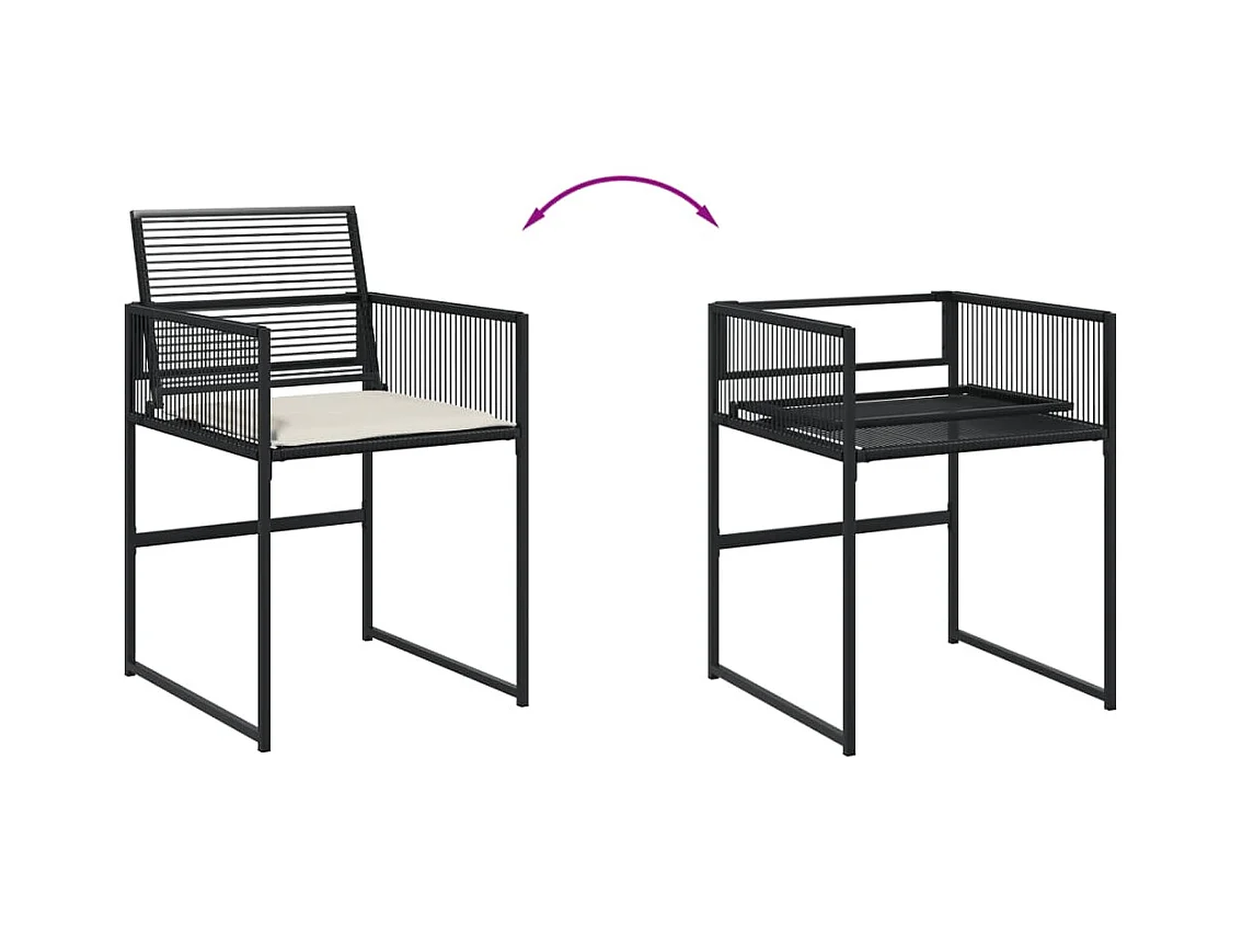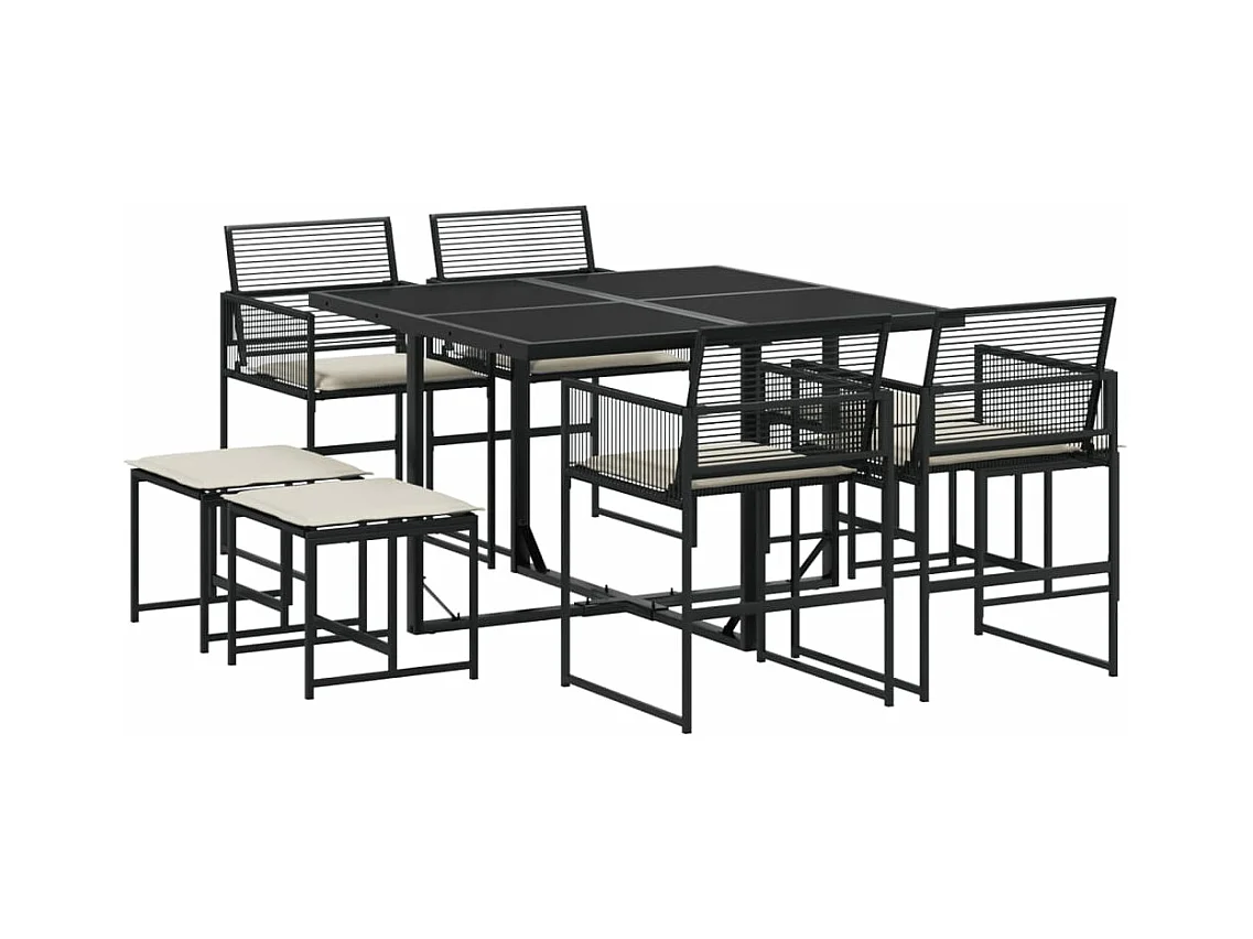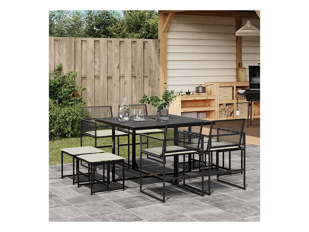 9 peças conjunto de jantar para jardim com almofadões vime PE preto