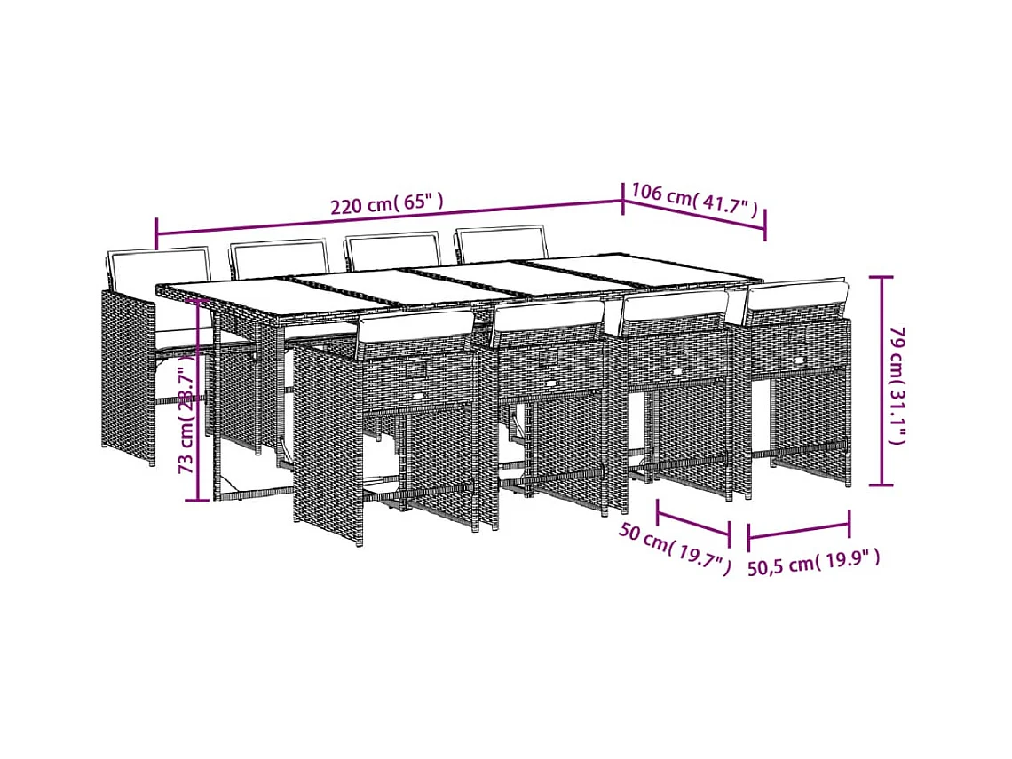 9 peças conjunto de jantar para jardim com almofadões vime PE preto