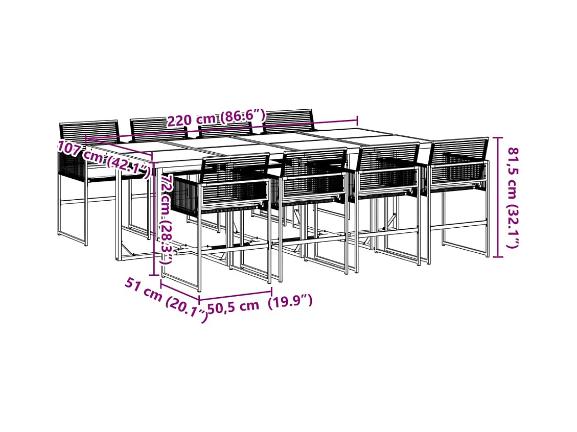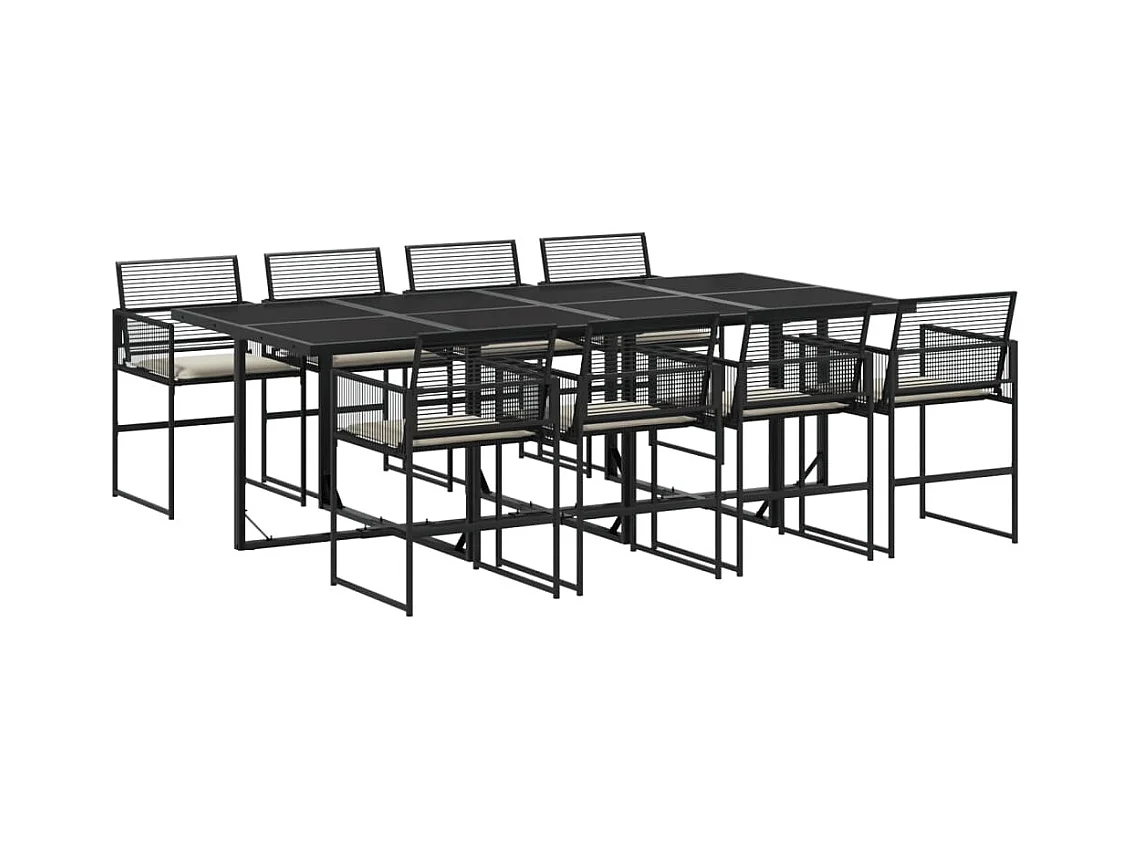 9 peças conjunto de jantar para jardim com almofadões vime PE preto