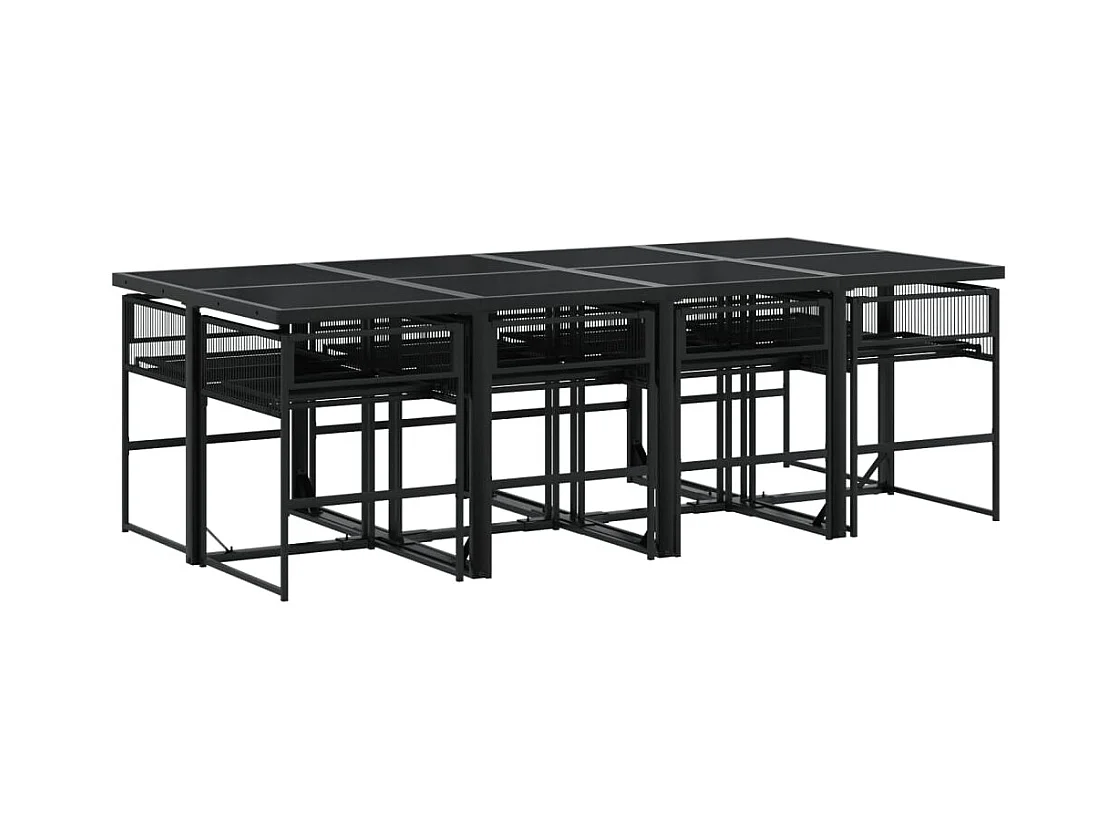 9 peças conjunto de jantar para jardim vime PE preto