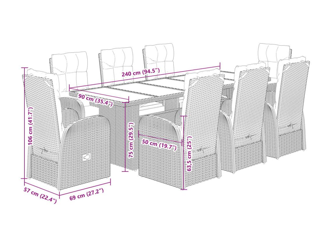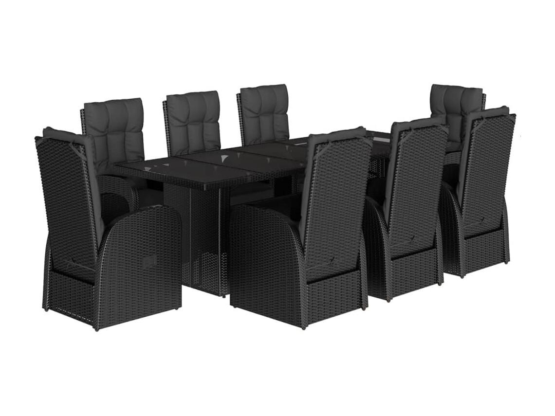 9 peças conjunto de jantar para jardim com almofadões vime PE preto