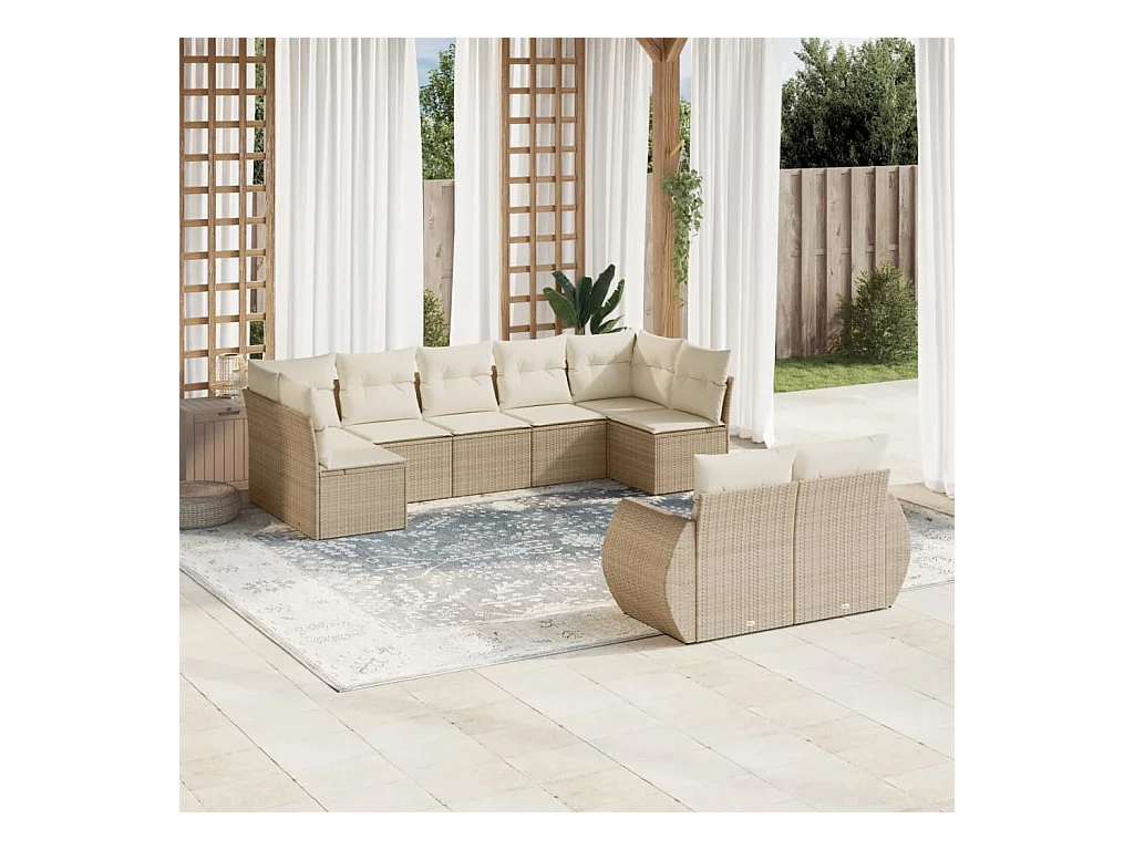 9 pcs conjunto de sofás p/ jardim com almofadões vime PE bege