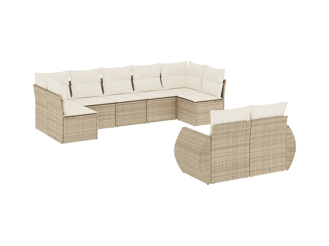 8 peças conjunto de sofás para jardim com almofadões vime PE bege