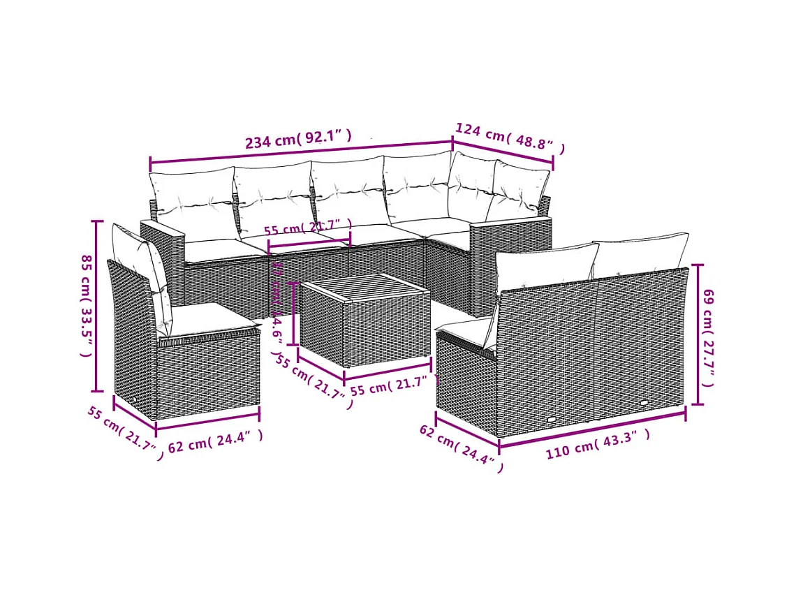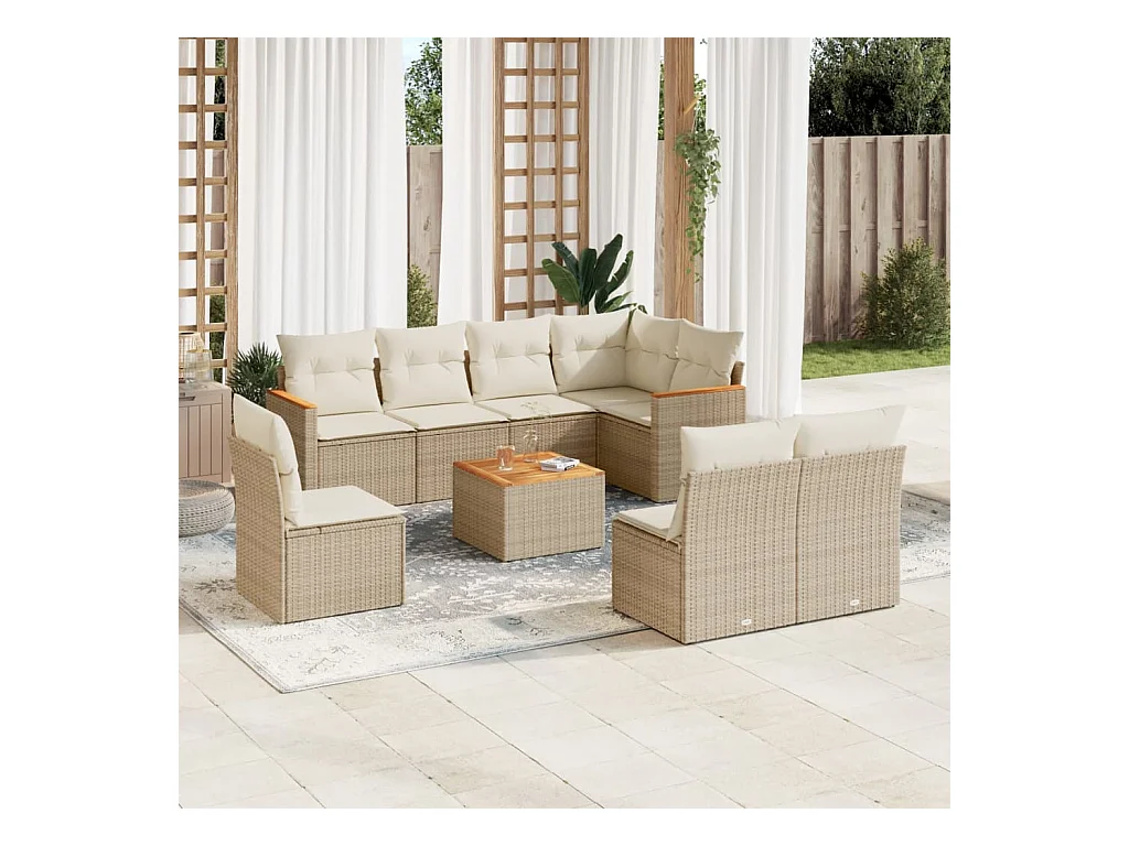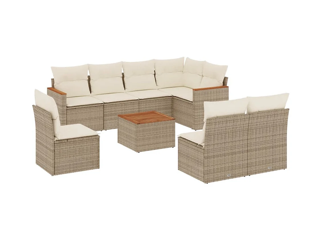 9 pcs conjunto de sofás p/ jardim com almofadões vime PE bege