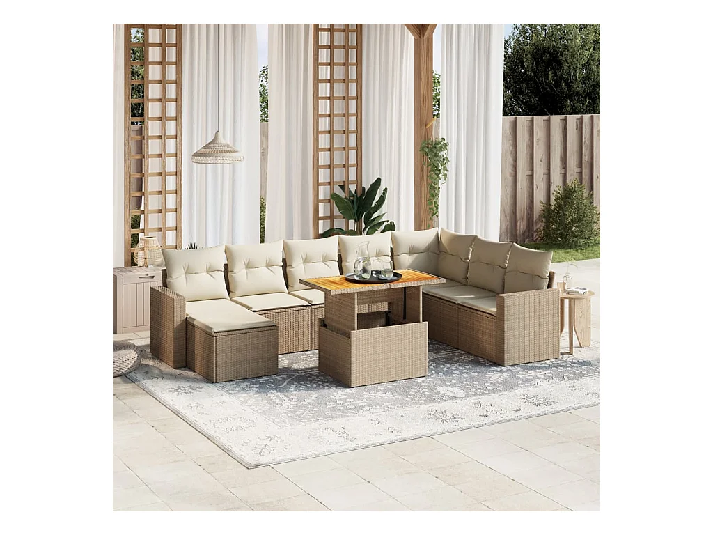 10 peças conj. sofás para jardim com almofadões vime PE/acácia bege