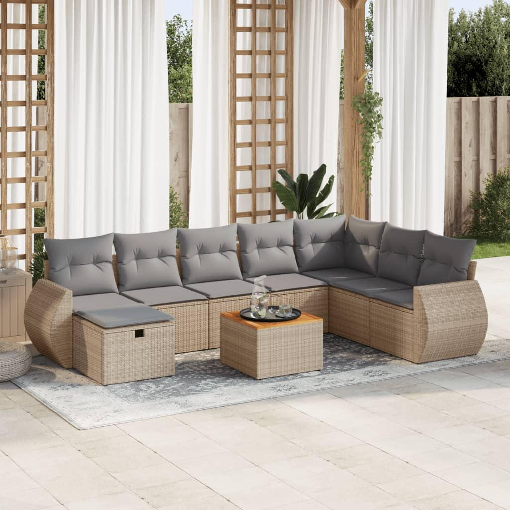 9 peças conjunto de sofás para jardim com almofadões vime PE bege