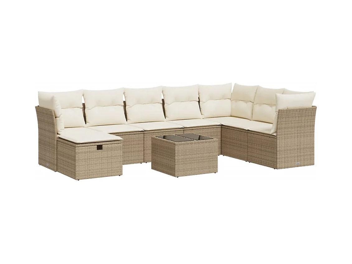 9 peças conjunto de sofás para jardim com almofadões vime PE bege