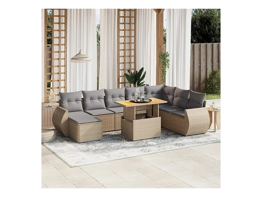 9 peças conjunto sofás jardim com almofadões vime PE/acácia bege