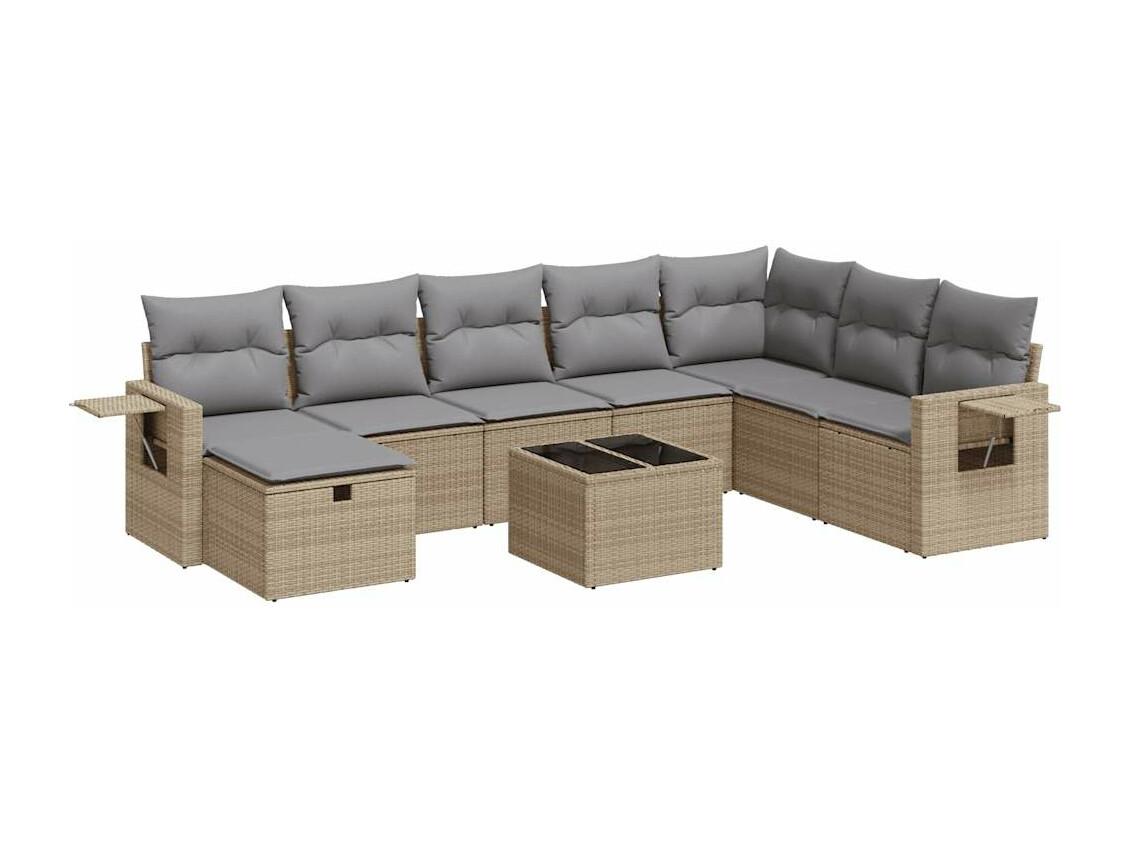 9 peças conjunto de sofás para jardim com almofadões vime PE bege