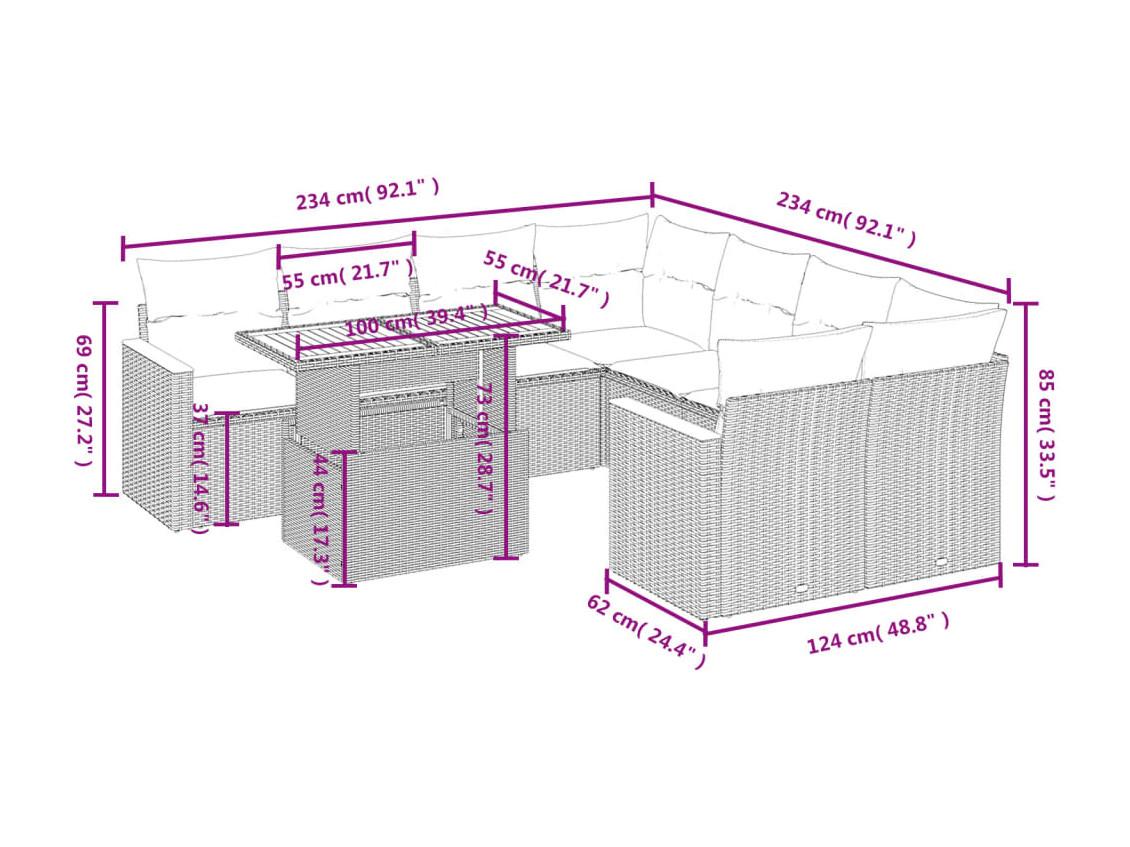 9 peças conjunto de sofás para jardim com almofadões vime PE bege