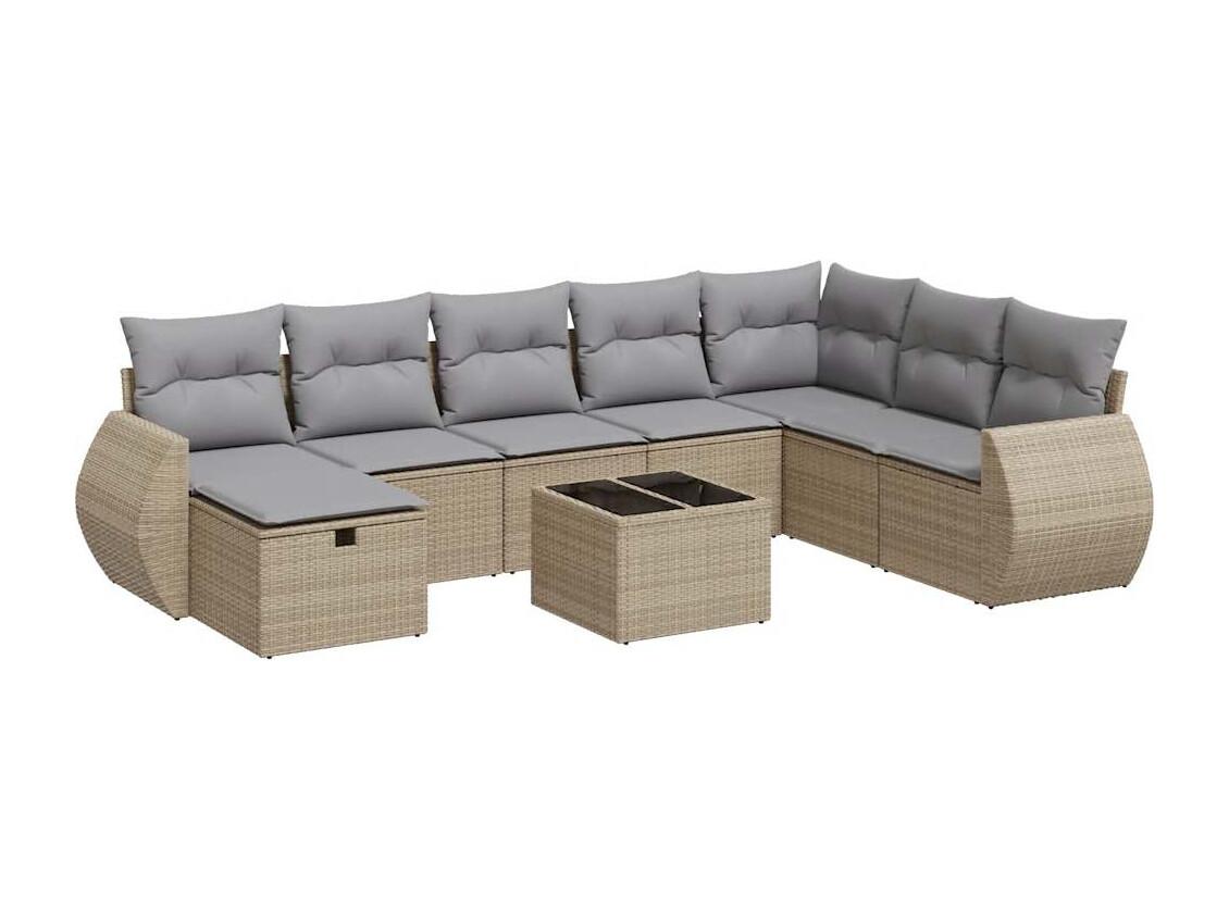 9 peças conjunto de sofás para jardim com almofadões vime PE bege