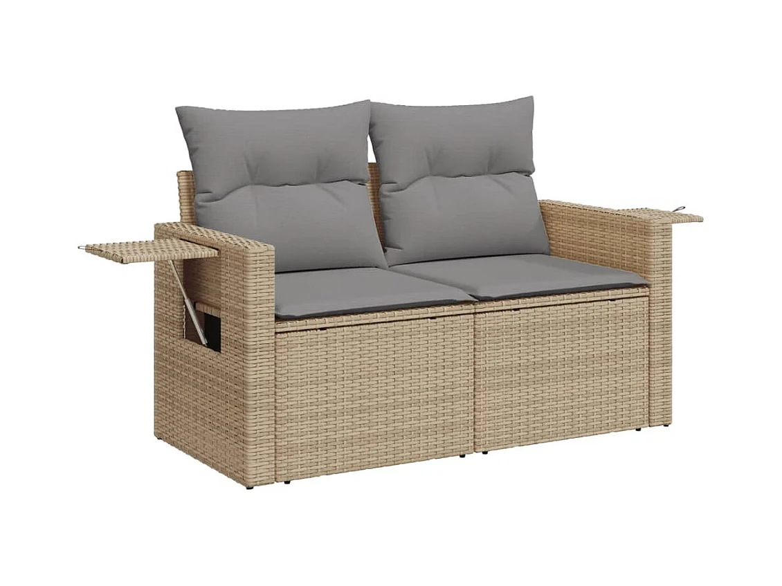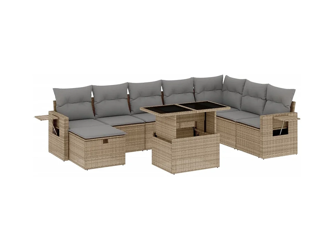 8 peças conjunto de sofás para jardim com almofadões vime PE bege