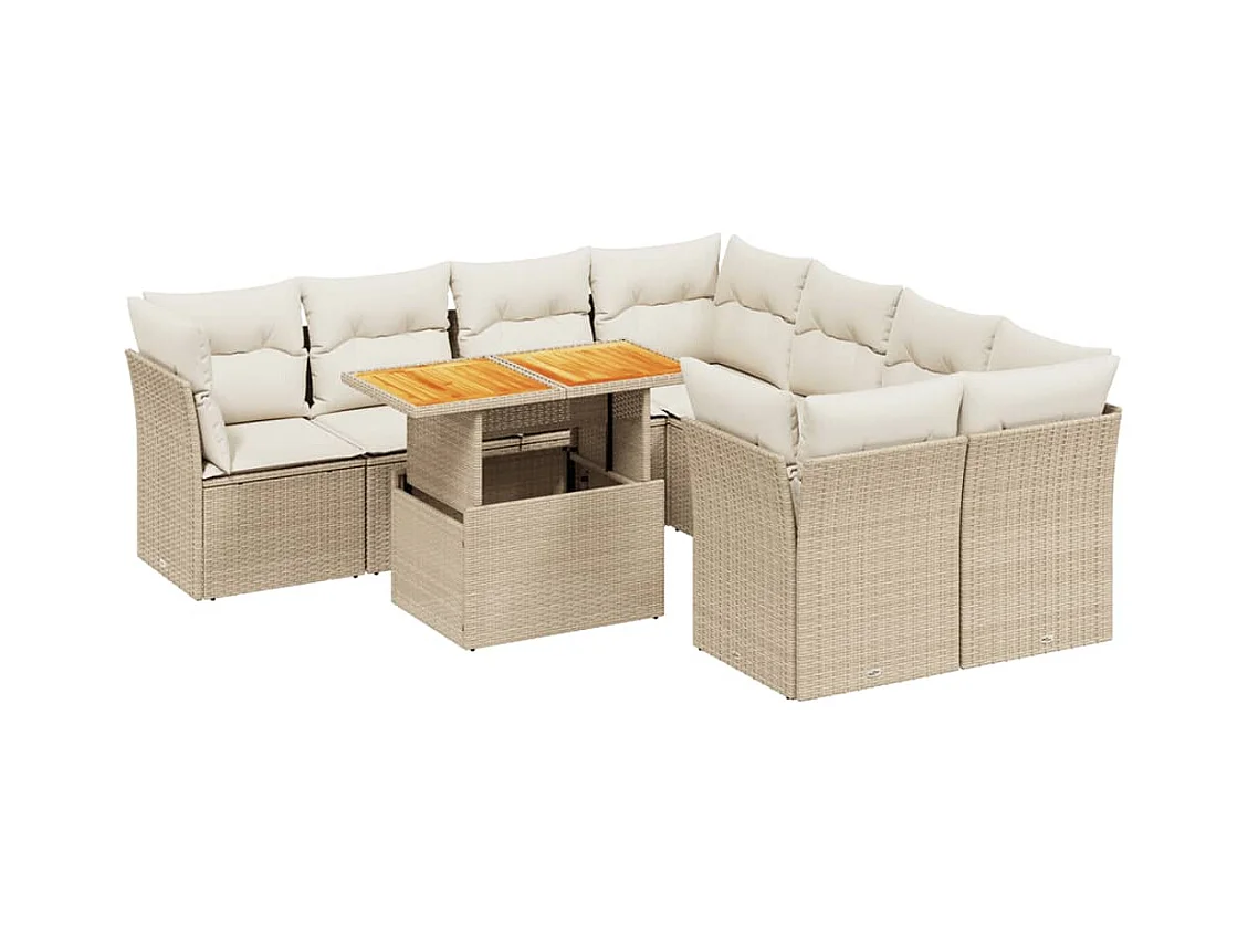 9 peças conjunto de sofás para jardim com almofadões vime PE bege