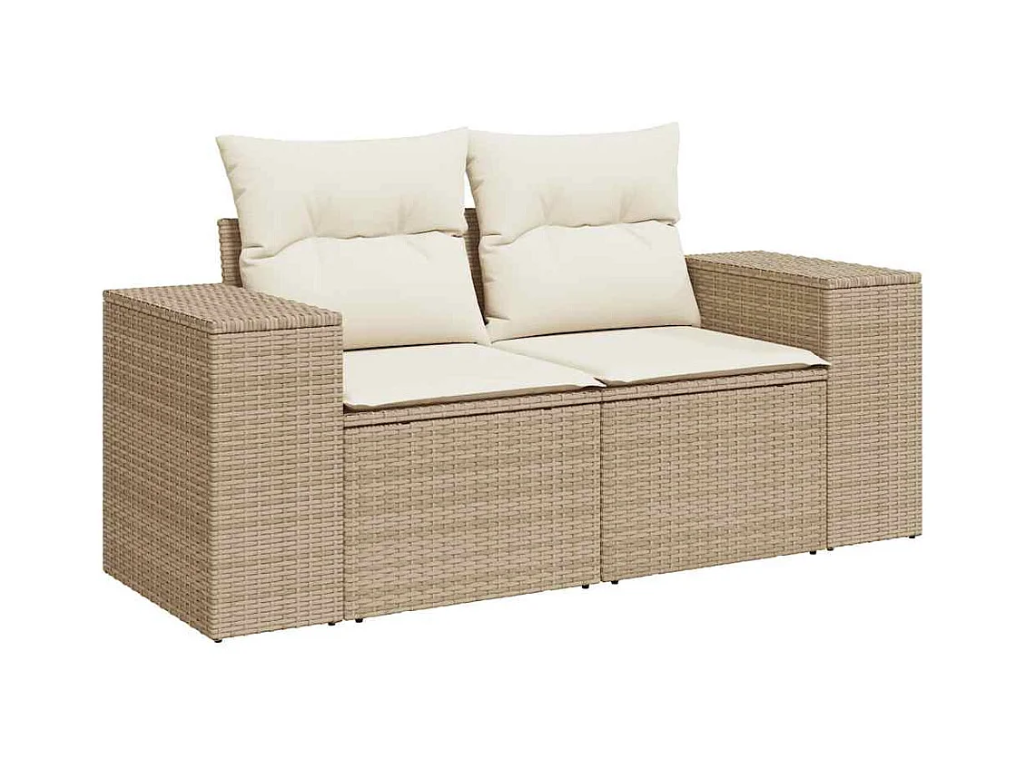 8 peças conjunto de sofás para jardim com almofadões vime PE bege