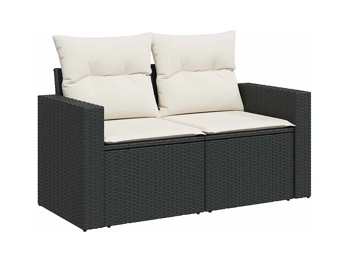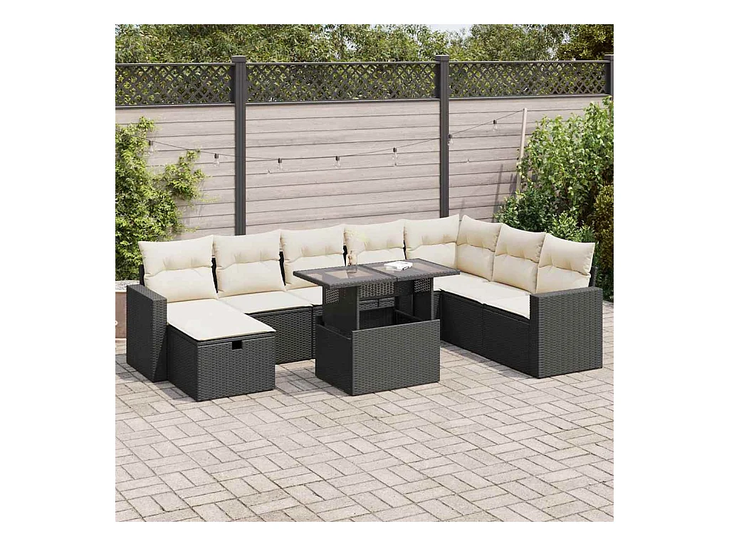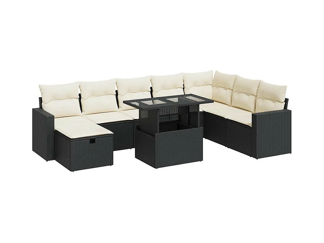 9 peças conjunto sofás para jardim almofadões vime PE/acácia preto