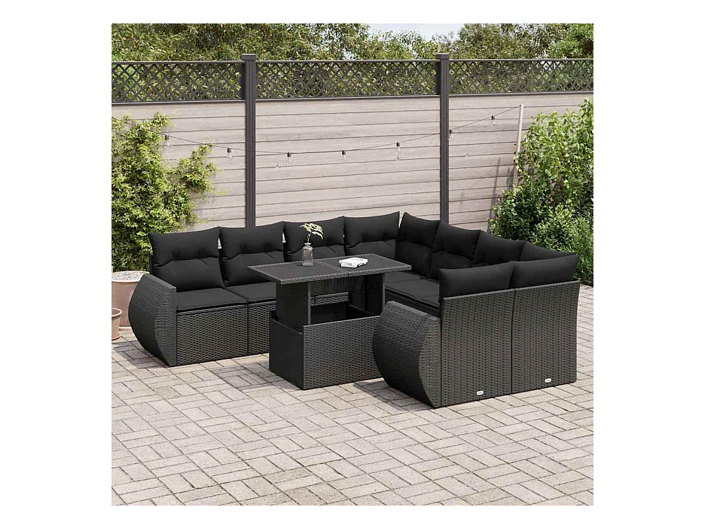 9 peças conjunto de sofás para jardim com almofadões vime PE preto