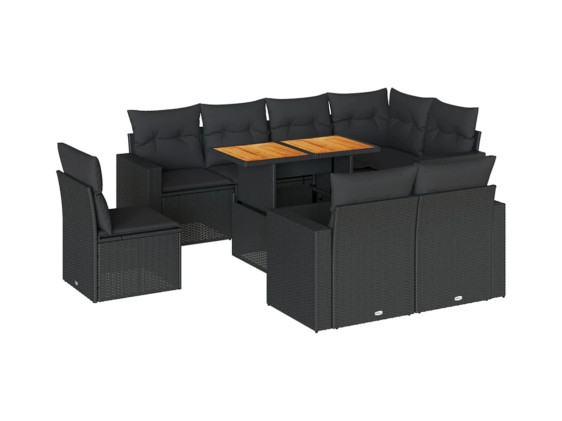 9 peças conjunto sofás para jardim almofadões vime PE/acácia preto
