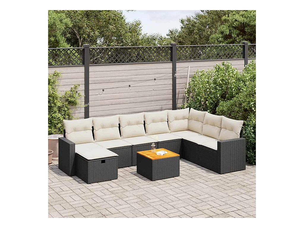 9 peças conjunto sofás para jardim almofadões vime PE/acácia preto