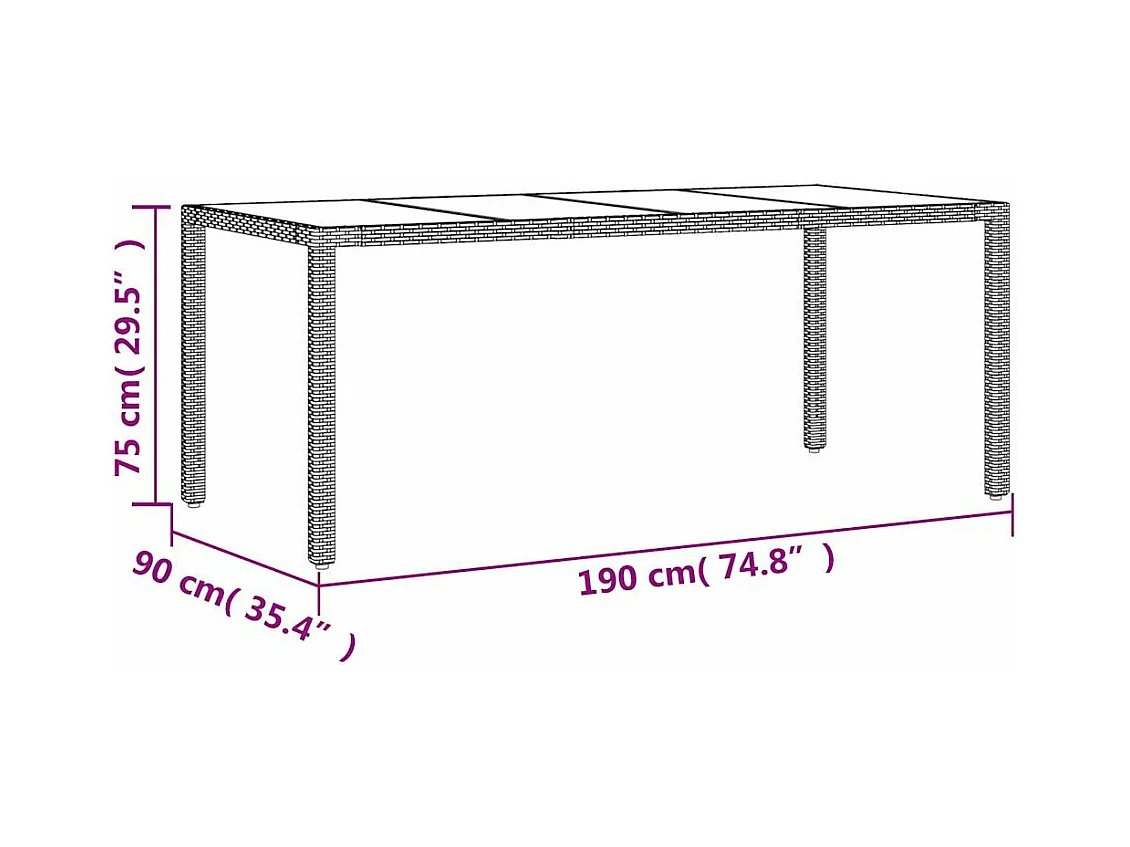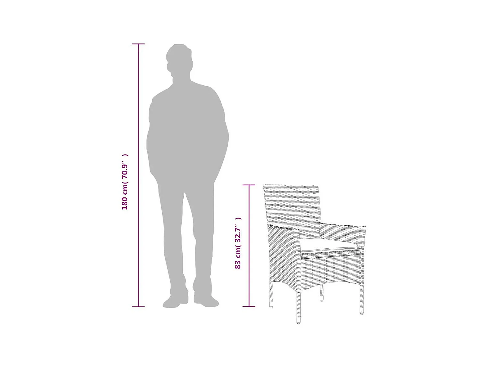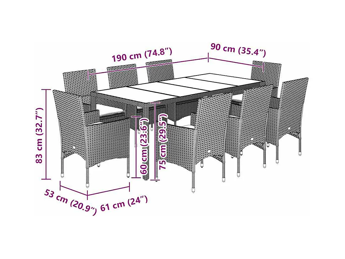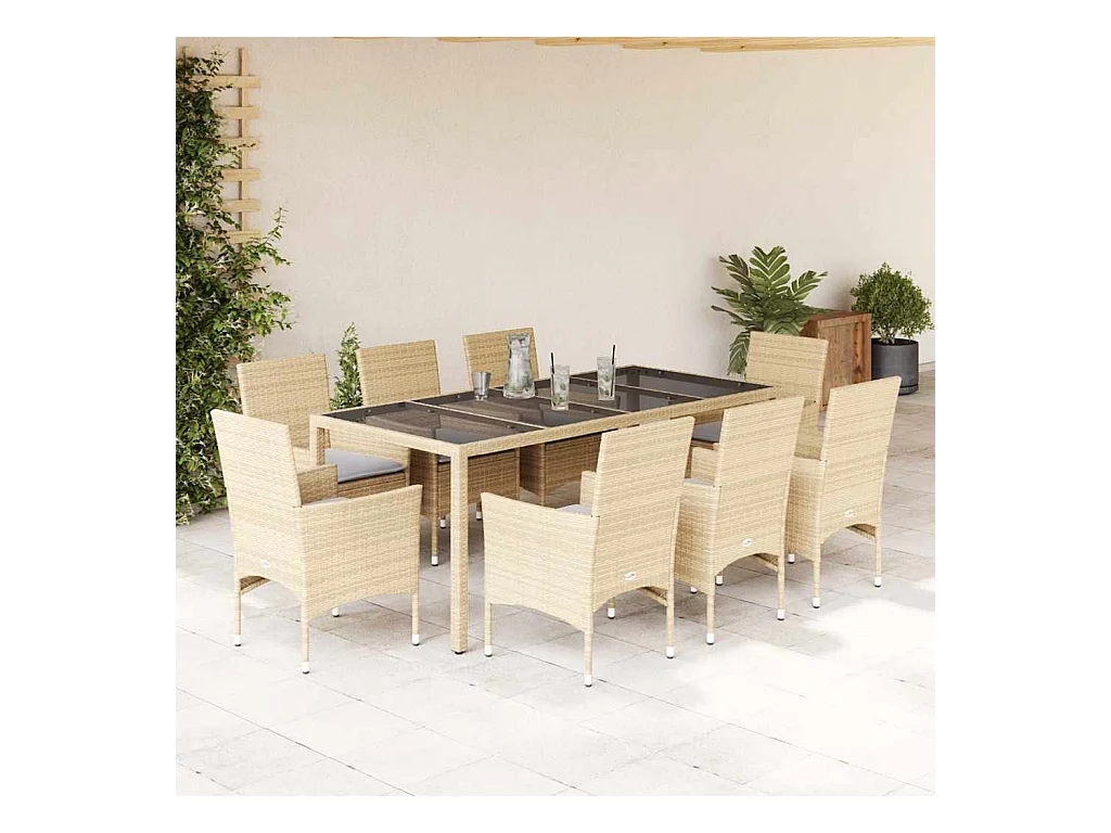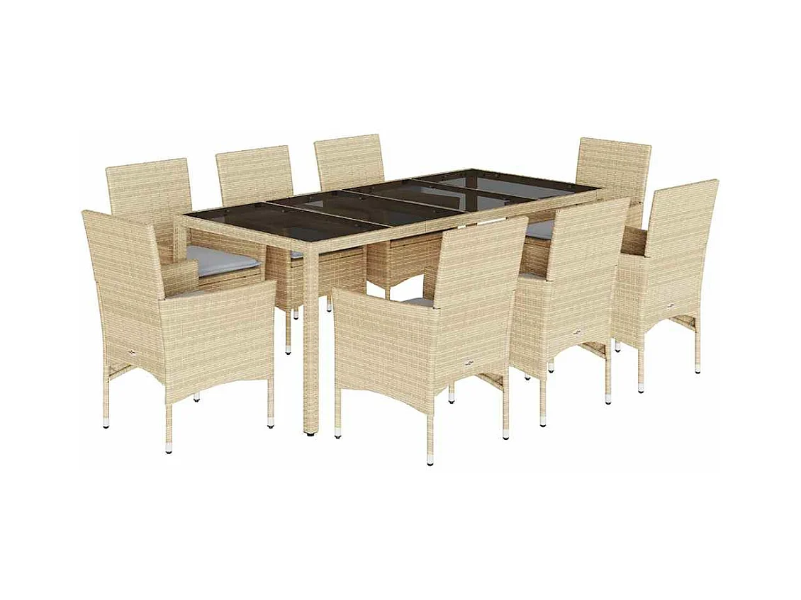 9 peças conjunto jantar jardim com almofadões vime PE/vidro bege