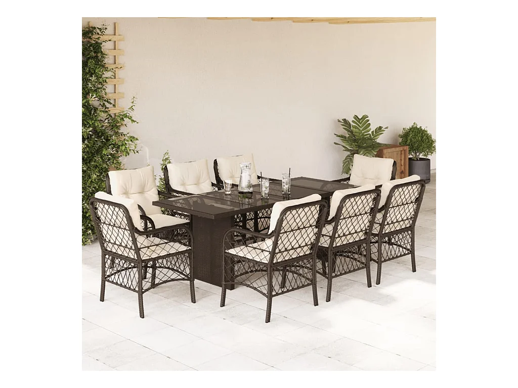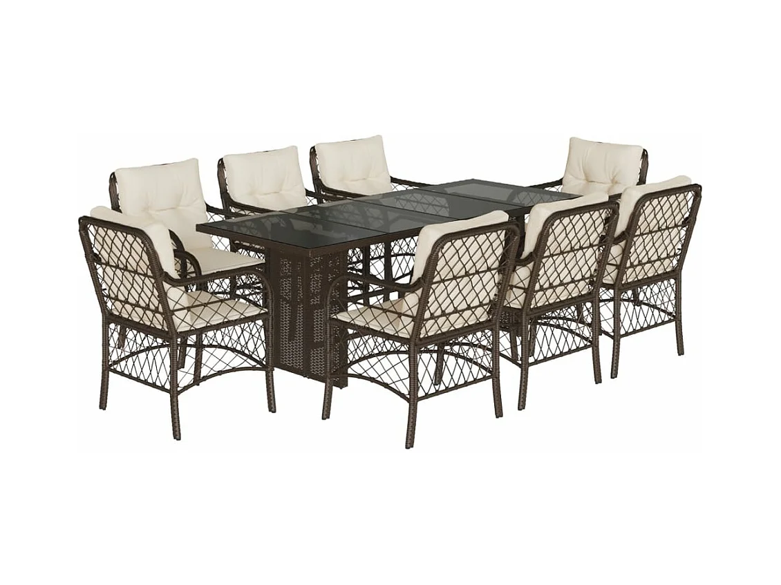 9 peças conjunto jantar p/ jardim c/ almofadões vime PE castanho