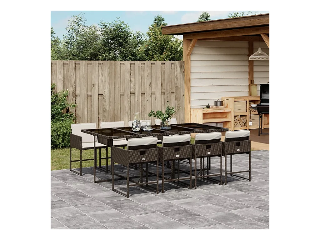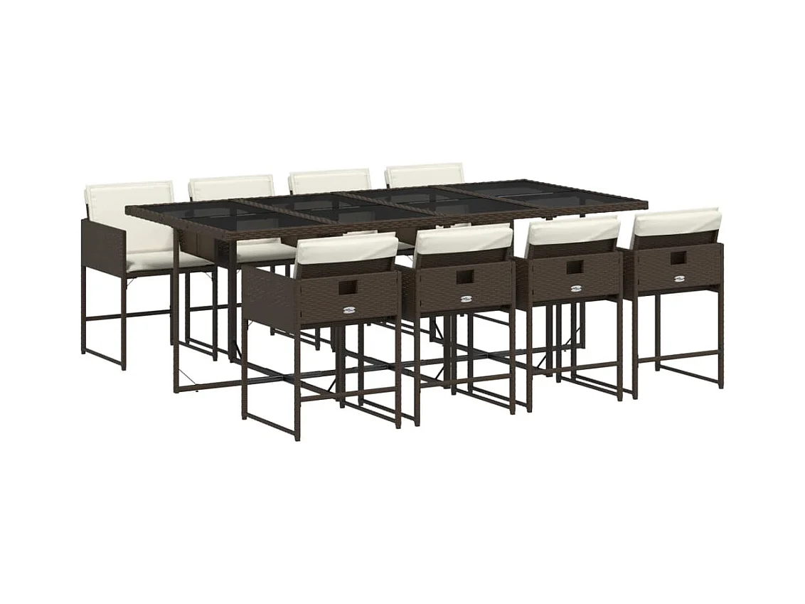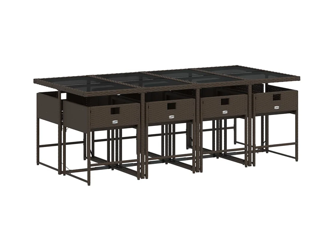 9 peças conjunto jantar para jardim com almofadões vime PE castanho