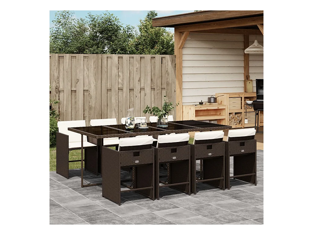 9 peças conjunto jantar para jardim com almofadões vime PE castanho