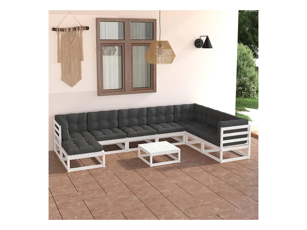 9 peças conjunto lounge de jardim com almofadões pinho maciço