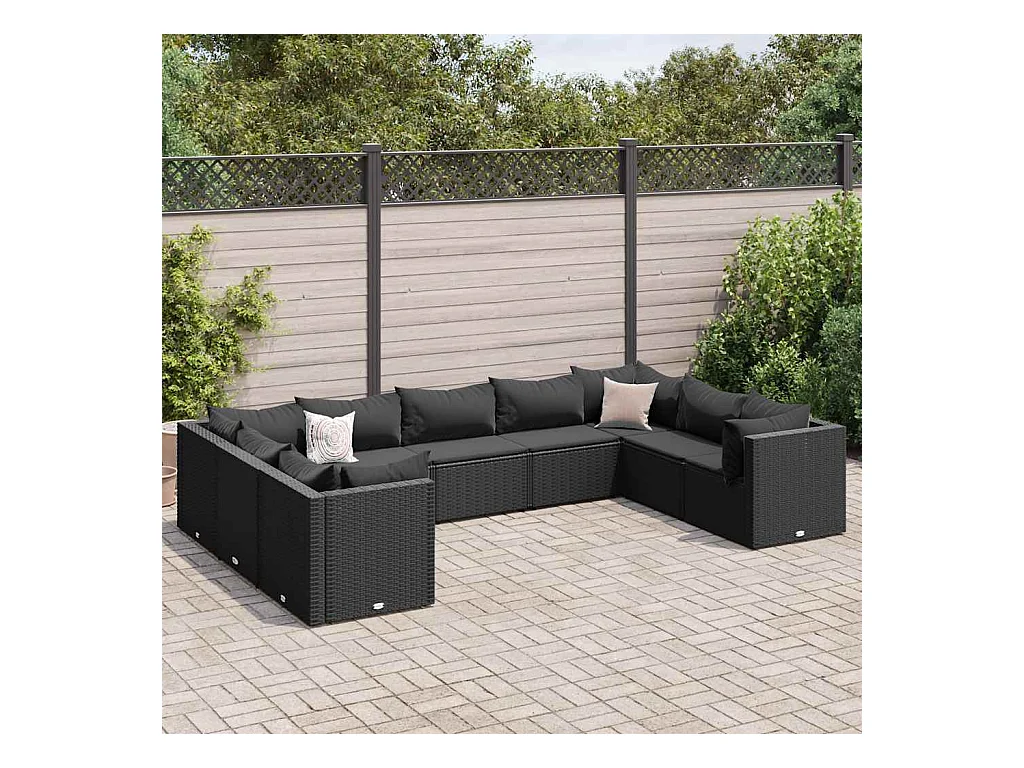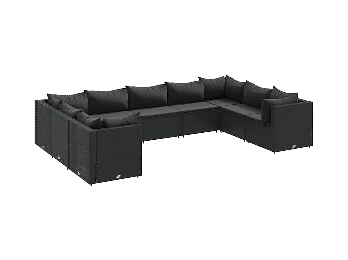10 peças conjunto sofás de jardim com almofadões vime PE preto