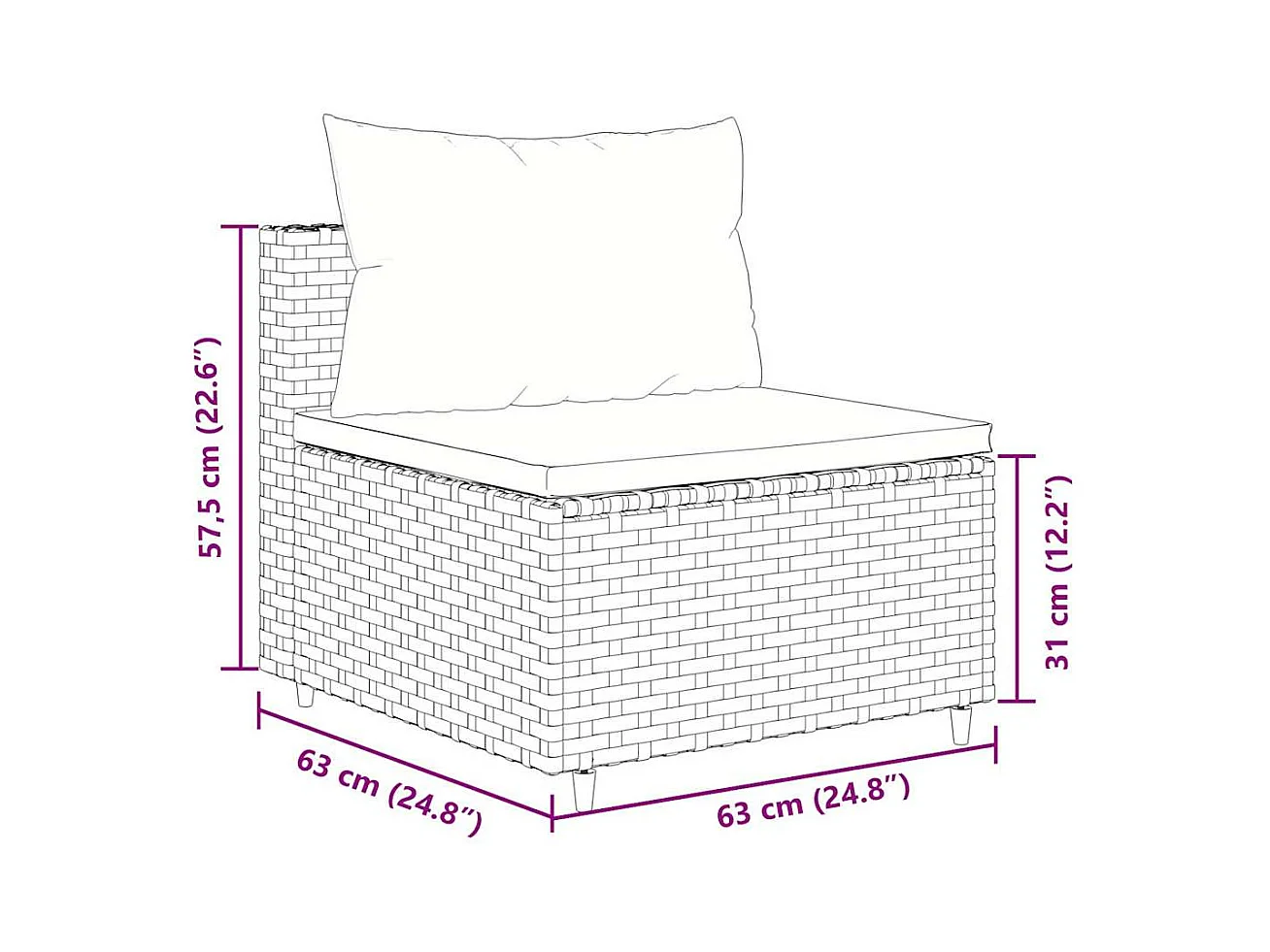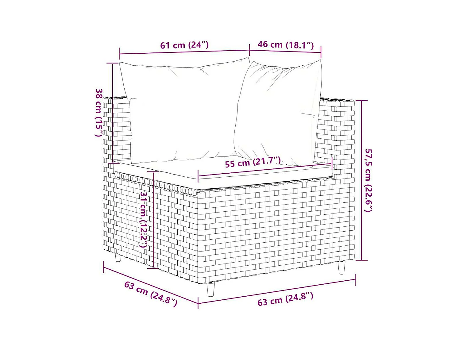 9 peças conjunto lounge de jardim com almofadões vime PE preto
