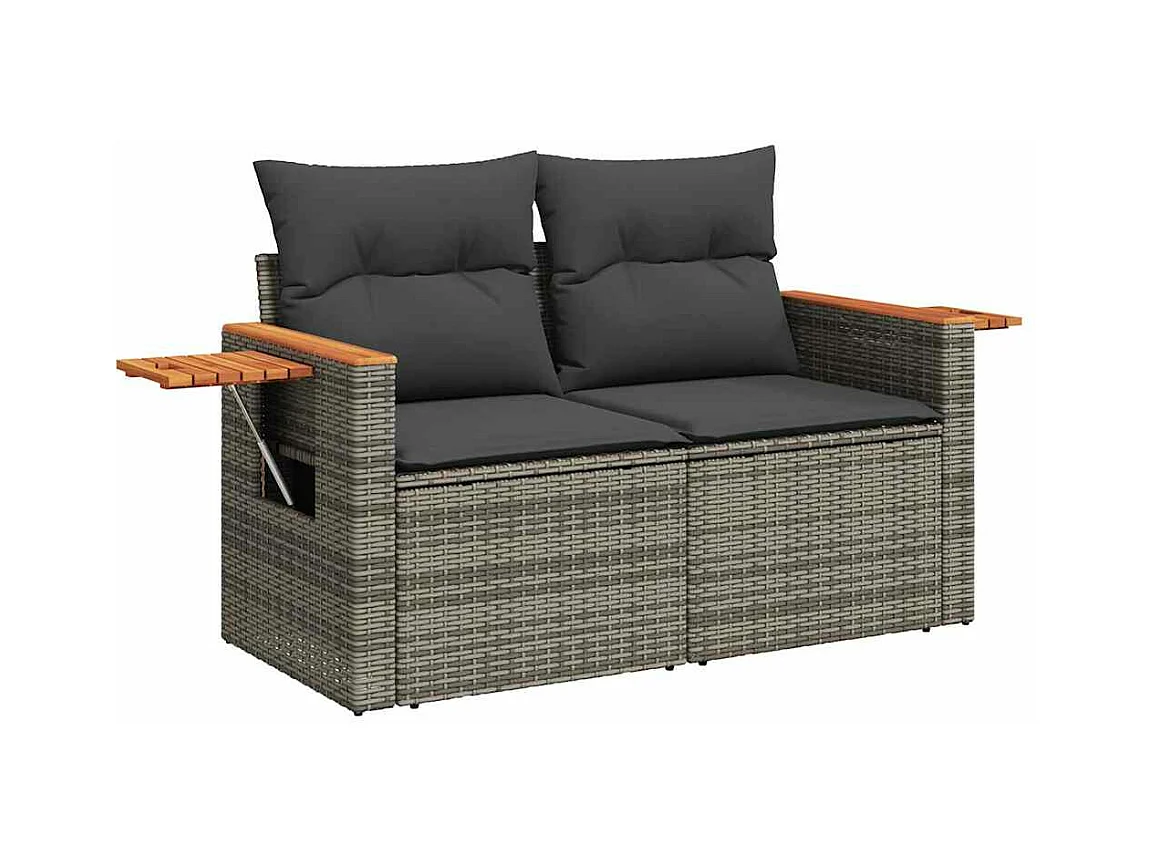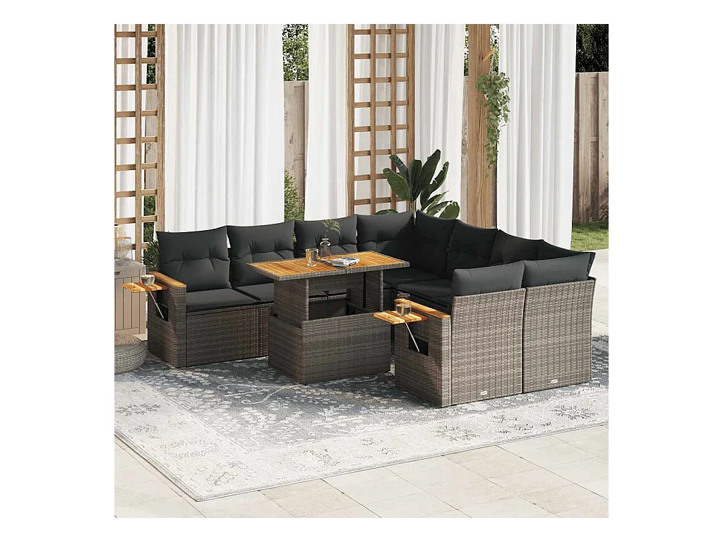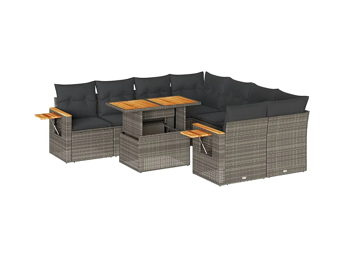 9 peças conjunto sofás jardim almofadões vime PE/acácia cinzento