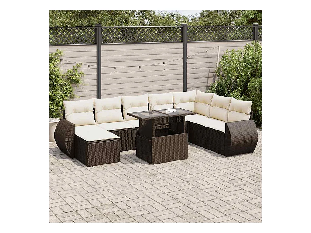 9 peças conjunto sofás para jardim com almofadões vime PE castanho
